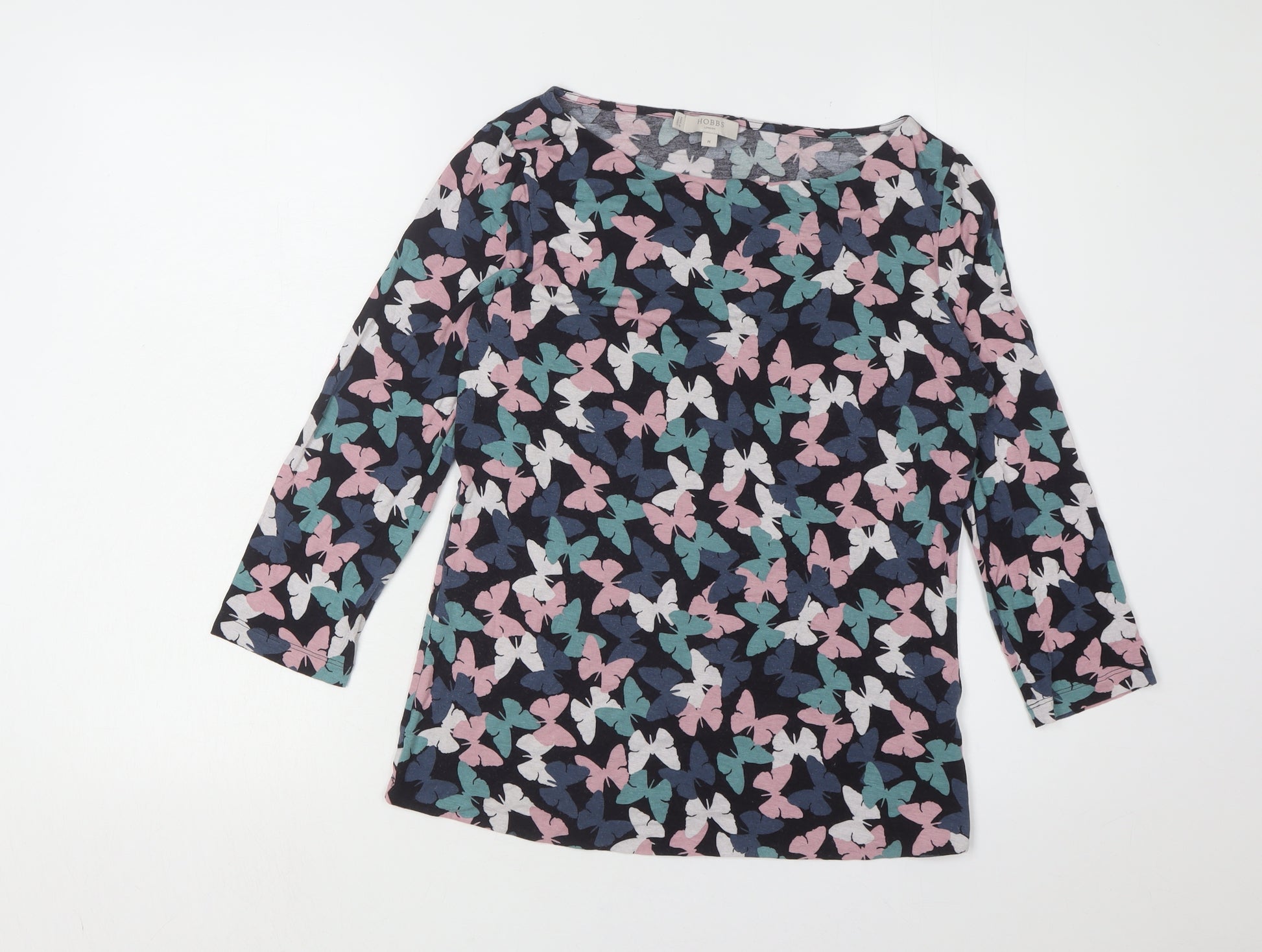 Step up your casual wardrobe with this elegant women’s multicoloured top from Hobbs. Designed for those who appreciate the marriage of comfort and style, this piece features a captivating butterfly print that adds a whimsical touch to any outfit. The 3/4 sleeves offer a relaxed yet sophisticated look, making it perfect for those in-between weather days. Its boat neckline brings a hint of elegance, complementing the playful pattern. Made from a stretchy blend of 95% viscose and 5% elastane, it assures comfort and flexibility, adapting to your movements effortlessly. This top is regular fit, ensuring a flattering silhouette for various body shapes. Ideal for a casual outing, pair it with jeans or a skirt for an effortless day look. Machine washable for convenient care, this top is a must-have addition for fashion-forward individuals. Grab it now and elevate your everyday style!