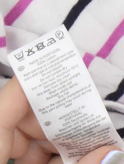 Marks and Spencer Women's White Striped Cotton T-Shirt L