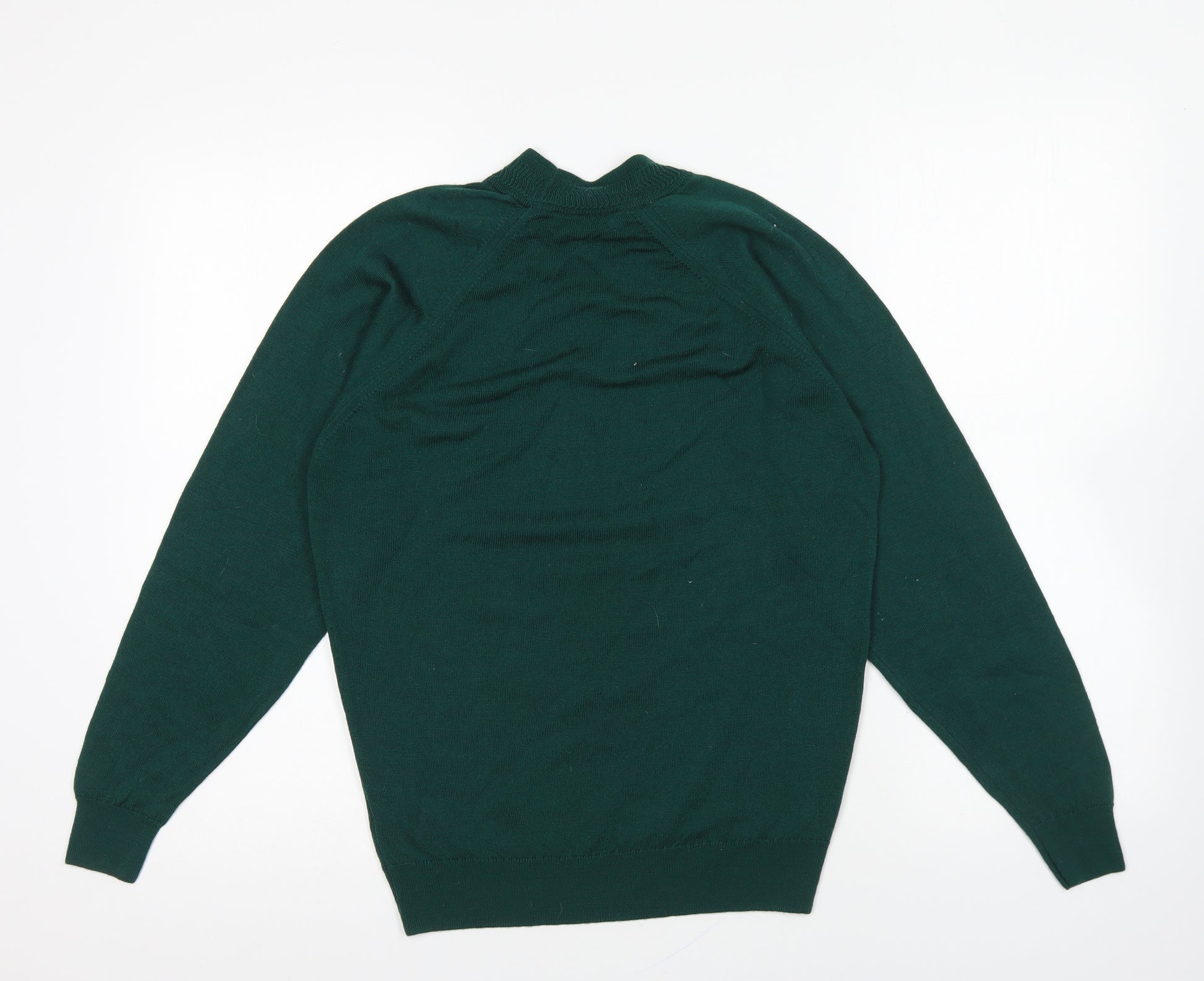 Womens Green Round Neck Wool Pullover Jumper Size 8
