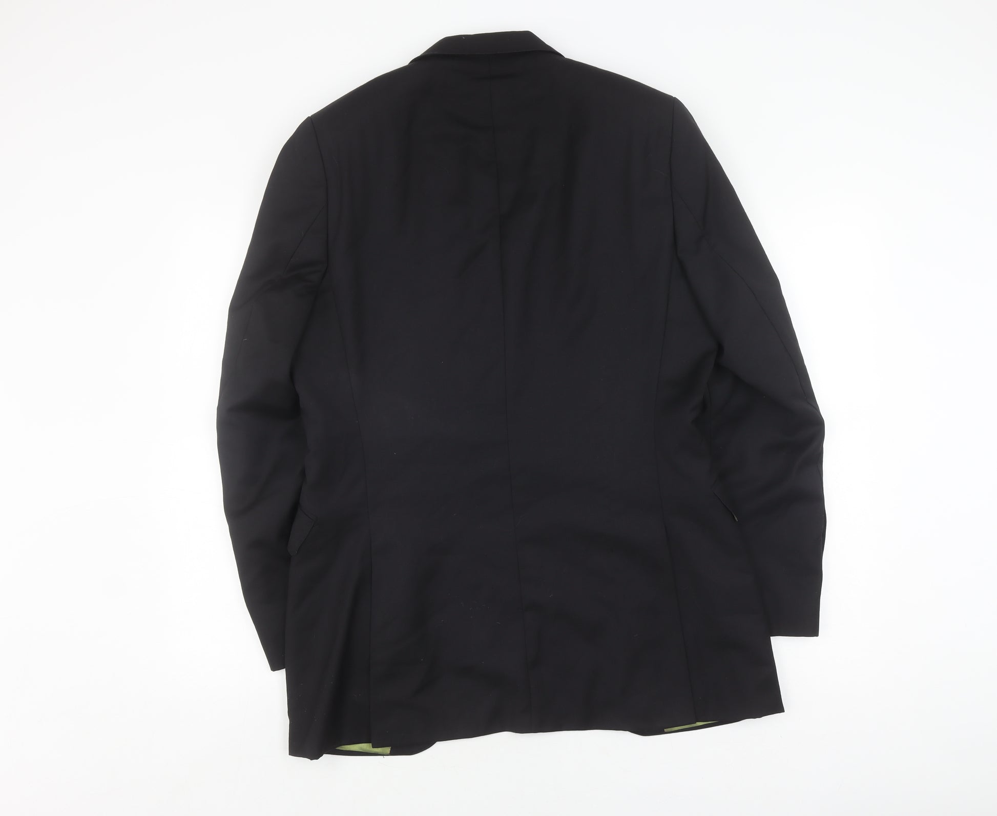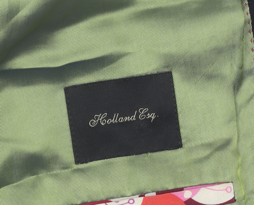 This exquisite Holland Esq. men's black blazer is the perfect addition to your formal wardrobe, offering a sophisticated and timeless appearance. Crafted from 100% wool, this blazer ensures both comfort and luxury, while the finely tailored regular fit accommodates a variety of body shapes smoothly. With its sleek, black colour and notch lapel style, it exudes elegance, making it ideal for business settings, formal occasions, and more. The lining, a blend of acetate and cupro, adds a touch of durability while maintaining breathability throughout the day. This single-breasted, two-button blazer comes with double-vented back for enhanced mobility and a distinguished look. Additionally, the jacket is designed with thoughtful features such as inner pockets for added convenience. The four-button cuff detail enhances sophistication while the lack of pattern keeps the look classic and versatile. The garment care instructions advise dry cleaning only, ensuring that its premium quality is maintained. Although this blazer has light wear, it remains in excellent condition with no visible sales tags, offering you the best experience of a brand new piece at a fraction of the cost. Whether you're stepping into a boardroom or attending a special event in autumn or spring, this classic jacket prepares you for all scenarios with unmatched style and grace. Grab it now for an unbeatable price and elevate your wardrobe with this distinguished piece.