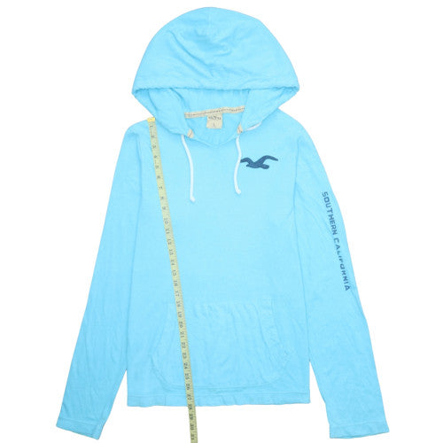 Refresh your casual wardrobe with this Hollister men’s pullover hoodie, designed for effortless comfort and laid-back style. Crafted from 100% soft cotton jersey, it feels breathable and light, making it ideal for layering across seasons. The hoodie comes in a striking sky blue colour, complete with Hollister’s distinctive seagull logo on the chest and ‘Southern California’ branding along the sleeve, giving it a cool, coastal vibe inspired by California living. This hoodie features a relaxed fit with a drawstring hood, classic kangaroo pocket, and durable stitching for longevity. The V-neck adds a modern touch to a timeless design, while its lightweight build ensures all-day comfort whether you’re heading out or lounging at home. Its practical features, including the front pocket and drawstring closure, provide both style and functionality. Perfect for casual outings, gym commutes, or weekend wear, this Hollister hoodie combines comfort, quality, and iconic American brand appeal. The high-quality cotton material ensures softness and breathability while remaining easy to care for, with machine washable convenience. Although gently worn with minimal signs of use such as light wear near the pocket, it remains in very good condition and is ready for continued everyday wear. A versatile addition to any wardrobe, this hoodie pairs effortlessly with jeans, shorts, or joggers for an authentic, relaxed look. Perfect for cooler spring days or layering under a jacket in autumn, its timeless design and vibrant colour make it a go-to choice for those who appreciate casual yet refined streetwear. Experience the signature Hollister comfort and West Coast flair with this blue pullover hoodie — a reliable essential for modern men seeking effortless style and everyday versatility.