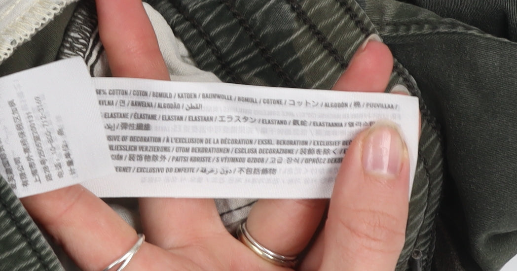 These Hollister men's camouflage jogger trousers combine modern streetwear style with everyday comfort. Crafted from a high-quality blend of 98% cotton and 2% elastane, the material provides a soft yet durable feel with a subtle stretch that moves naturally with the body. The joggers feature a comfortable elasticated drawstring waistband for a secure fit and additional comfort. The green camouflage pattern gives a bold, masculine edge, ideal for casual days out or relaxed travel outfits. Designed with a tapered leg and cuffed ankles, the trousers offer a sleek, fitted silhouette that is both functional and fashionable. They include practical side slash pockets and rear welt pockets for convenience, along with reinforced knee seam details for an added rugged touch. The fabric’s mid-weight twill construction makes them perfect for spring and autumn wear, offering breathability and durability. The elastic waist and drawstring closure make these joggers versatile and easy to style with a T-shirt, sweatshirt, or casual shirt. Whether worn for a day exploring the outdoors or lounging comfortably at home, these trousers deliver a timeless look with subtle Hollister branding for that signature California-inspired aesthetic. In excellent used condition with no visible signs of damage or major wear, these joggers reflect quality craftsmanship and attention to detail synonymous with the Hollister brand. Machine washable and designed to last, they’re an ideal addition to any casual menswear wardrobe. Perfectly suited for men seeking relaxed comfort without compromising on style, these trousers are an easy wardrobe favourite that coordinate effortlessly with trainers or boots for all-season appeal.