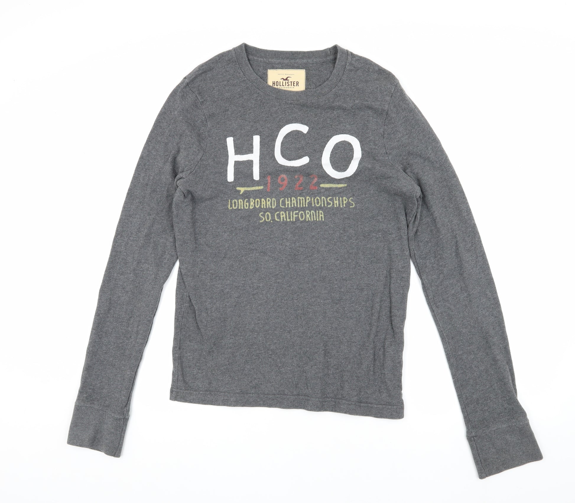 Elevate your casual wardrobe with this stylish grey pullover sweatshirt from Hollister. Designed for men, this S-sized sweatshirt is perfect for layering during the cooler months of autumn and spring. Crafted from soft, breathable jersey, it features a crew neck and long sleeves for a comfortable fit. The graphic print on the front adds a touch of college-inspired charm, showcasing your laid-back sense of style. Made from 100% cotton, this sweatshirt is machine washable for easy care. Whether you're heading to class or just lounging at home, this versatile piece will keep you looking effortlessly cool.