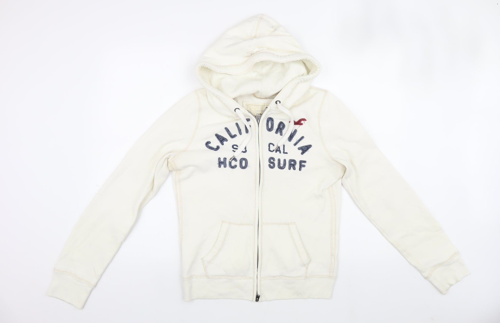 Upgrade your casual wardrobe with the Hollister Men's Ivory Full Zip Hoodie, a perfect blend of comfort and style. Crafted for those who appreciate quality and design, this hoodie features a timeless ivory colour and soft fleece fabric, ensuring both warmth and a stylish appearance. The hoodie is adorned with embroidered accents and the iconic Hollister logo, giving it a touch of class and a nod to its California surf heritage.Designed with convenience in mind, the full zip closure allows for easy layering over your favourite tees. The hoodie is equipped with a practical hood and spacious pockets, making it ideal for everyday wear whether you're running errands or catching up with friends. The long sleeves and regular fit provide a comfortable silhouette for a variety of body types.Made from a durable blend of 60% cotton and 40% polyester, this hoodie is not only stylish but also machine washable, making it easy to care for. The embroidered detailing and graphic print add a unique flair, while the understated theme of California and surf culture make this piece a versatile addition to any wardrobe.Whether you're enjoying a breezy day at the coast or just relaxing at home, this Hollister hoodie offers the perfect combination of style, comfort, and practicality. Embrace the laid-back vibe of the surf lifestyle with this essential piece, suited for all seasons and occasions.