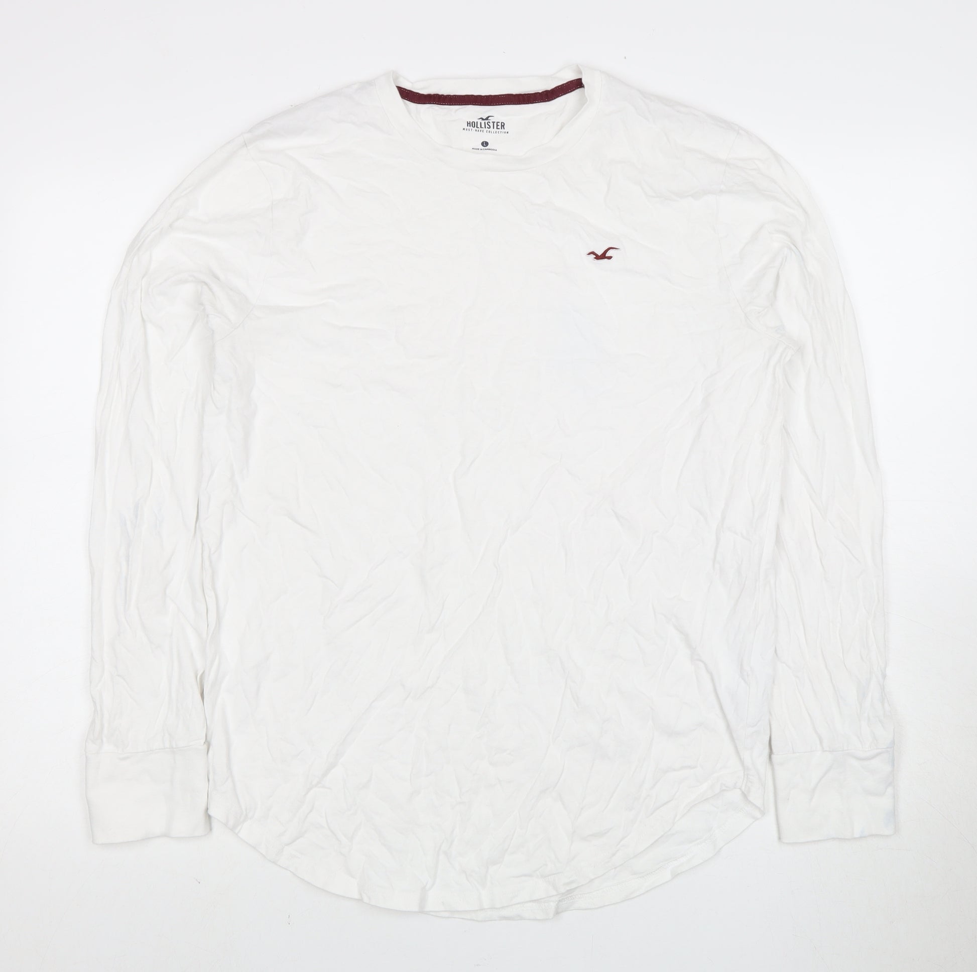 Elevate your casual wardrobe with this Hollister Men's White Long Sleeve T-Shirt. Crafted from 100% cotton, this t-shirt ensures comfort and breathability throughout the year. Featuring a regular fit and a classic crew neck, it provides a timeless look that is easy to pair with any ensemble. The solid white colour adds a clean, fresh appeal, perfect for versatile styling. Embellished with the iconic Hollister logo, this t-shirt represents quality and style. Ideal for men who appreciate both comfort and fashion, it's suitable for all seasons. The long sleeves offer added coverage, making it a staple for layering during cooler months or wearing on its own during milder weather. Although slightly wrinkled, the fabric is in excellent condition, ensuring long-lasting wear. Effortlessly transition from a casual day out to a relaxed evening with this essential wardrobe piece. Embrace the simplicity and elegance of Hollister with this must-have t-shirt.