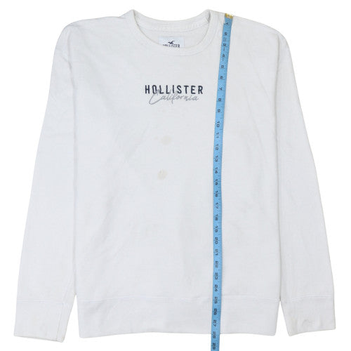 Elevate your casual wardrobe with this classic Hollister men's sweatshirt in crisp white. Crafted from a soft cotton and polyester blend, this pullover top provides breathable comfort and a lightweight feel that makes it ideal for layering during spring, autumn, or winter. The crew neck design and relaxed fit ensure both style and comfort, suitable for everyday wear, lounging, or outings. Featuring the iconic Hollister California logo across the chest, this sweatshirt captures an effortless coastal-cool aesthetic associated with the brand. Designed with long sleeves and ribbed cuffs and hem, it maintains shape while offering a laid-back fit that complements jeans or joggers perfectly. Made from 70% cotton and 30% polyester, it offers durability, softness, and easy maintenance—fully machine washable for convenience. The casual style and minimalistic design make this sweatshirt versatile for multiple occasions, from relaxed weekends to casual dinners. While this piece is in very good used condition, it has a couple of light marks on the front, which do not detract from its overall clean and stylish appearance. Its classic tone and graphic logo detail offer timeless appeal for those who appreciate understated clothing with subtle branding. This sweatshirt is ideal for men seeking comfort, practicality, and effortless California-inspired style. Whether worn alone or layered with jackets during cooler months, this Hollister piece stands out as a wardrobe essential that exudes comfort and modern simplicity. With its premium materials and signature logo design, it remains a must-have staple for anyone wanting to achieve that easy-going yet refined look.