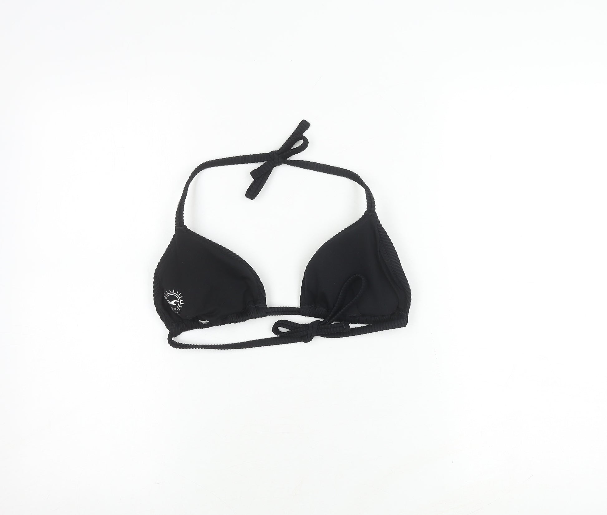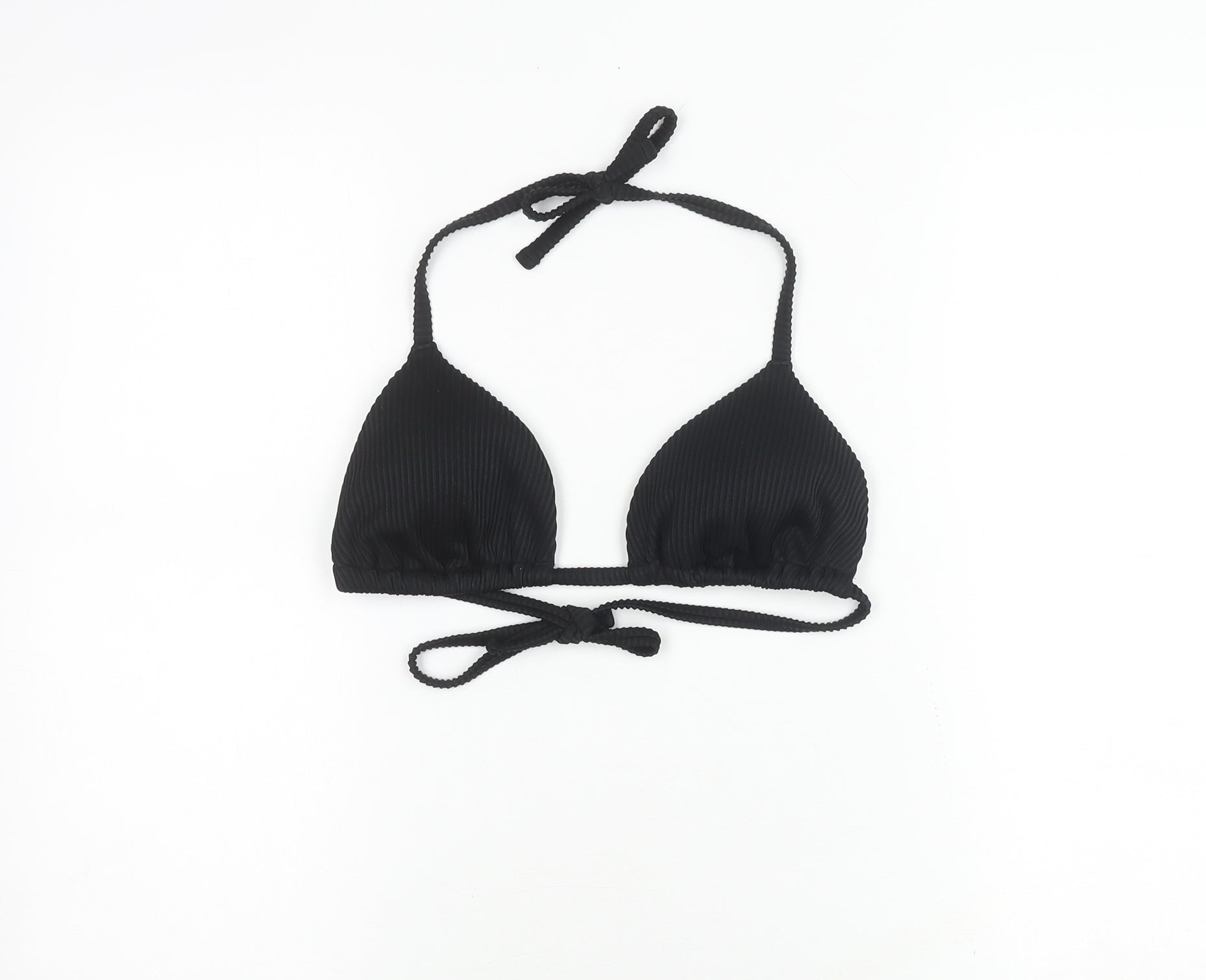 Elevate your swimwear collection with this chic Hollister triangle bikini top, perfect for your next beach getaway or poolside lounging. Crafted in a timeless black hue, this piece exudes elegance and versatility. Made from a blend of polyamide and elastane, it ensures a comfortable fit while maintaining its sleek appearance after multiple wears. Designed with a halter strap, it provides optimal support and style, ideal for women who appreciate both function and fashion. The bikini top features a simple yet sophisticated no-pattern design, making it easy to mix and match with various swim bottoms. Whether you're catching waves or simply basking under the sun, its durable materials promise longevity and a flattering look. This top, in a size Large, is a staple for those looking to make a statement in minimalist fashion. Despite the absence of original sales tags, this piece remains in excellent condition. Make a lasting impression with Hollister's swimwear, where comfort meets contemporary style.