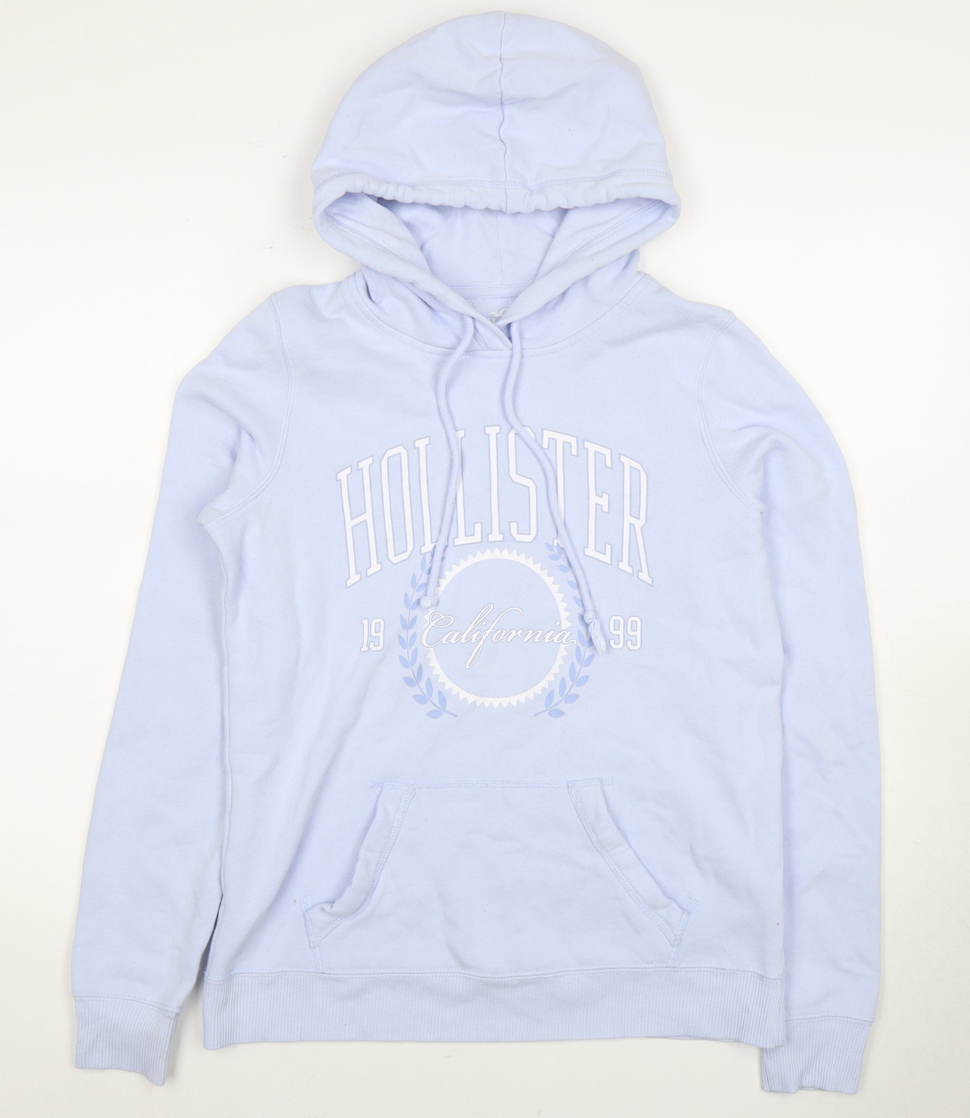 Elevate your casual wardrobe with this Hollister Women's Blue Pullover Hoodie. Crafted from a comfortable blend of 66% cotton and 34% polyester, this hoodie ensures a soft touch and long-lasting wear. Its classic design features a convenient drawstring closure, making it easy to adjust the hood for your comfort. The iconic Hollister logo accents the front, adding a touch of style to this versatile piece. Perfect for women looking for a casual, comfortable fit, this hoodie includes a kangaroo pocket for storing essentials or keeping your hands warm. The long sleeves and regular fit make it suitable for all seasons, whether you're lounging at home or heading out for a day of errands. With a machine washable design, caring for this hoodie is as easy as wearing it. Despite slight signs of wear, it remains in excellent condition, promising to be a cozy addition to your wardrobe at a great value.
