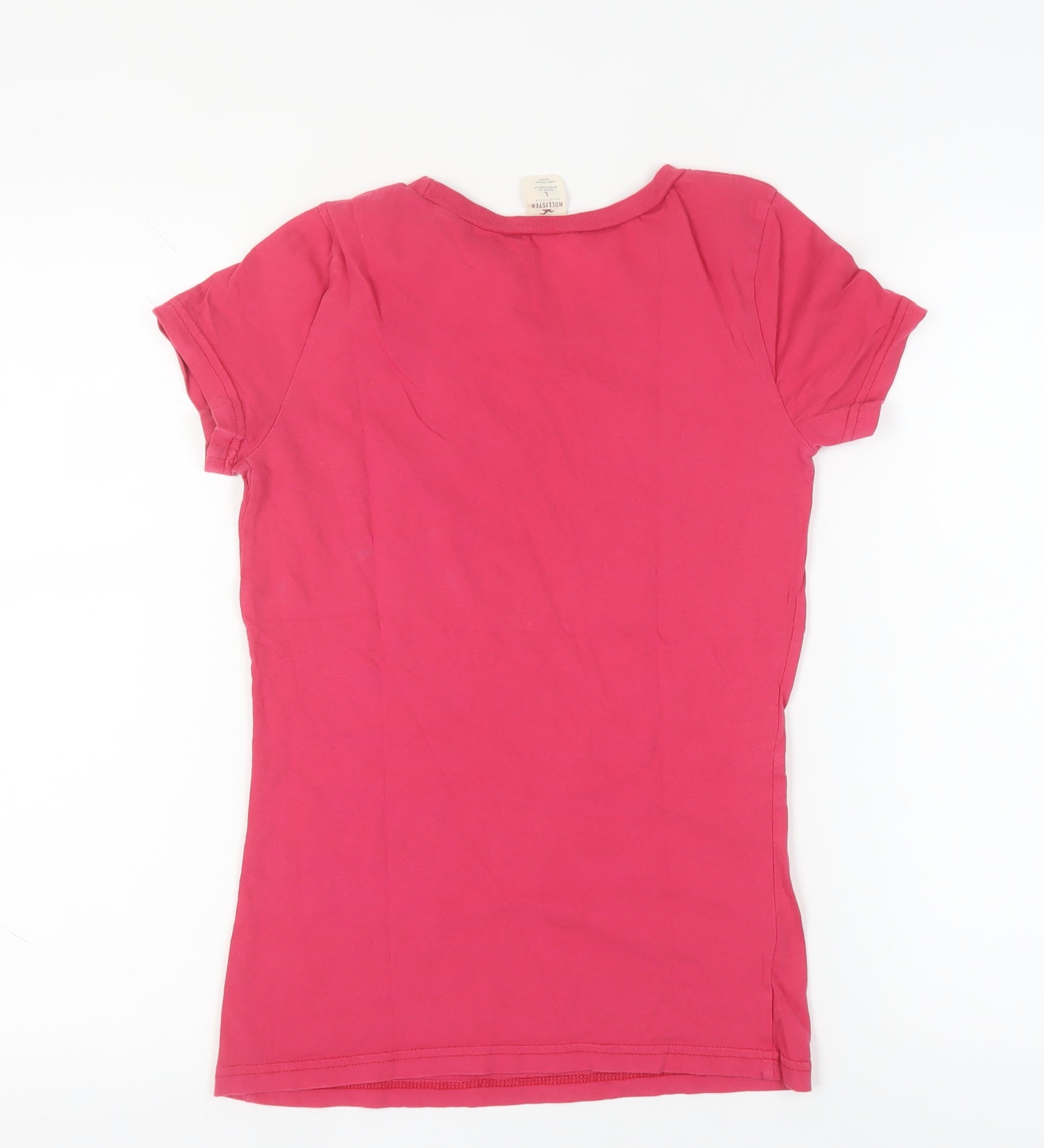 Elevate your casual wardrobe with this vibrant pink T-shirt from Hollister, crafted from pure cotton for a comfortable and breathable fit. Perfect for women who appreciate a blend of style and comfort, this basic tee features a classic crew neck and short sleeves, making it an essential staple for all seasons. The design radiates a relaxed yet stylish vibe, ideal for everyday wear or laid-back outings. Pair it with your favourite jeans or shorts for an effortlessly chic look. Its regular fit ensures a flattering silhouette, while the machine-washable jersey fabric adds to its easy-care appeal. Despite being gently worn, it maintains excellent condition, offering fantastic value at an attractive price point. Don’t miss the opportunity to add this versatile piece to your clothing rotation, blending seamlessly with a variety of outfits for different occasions.