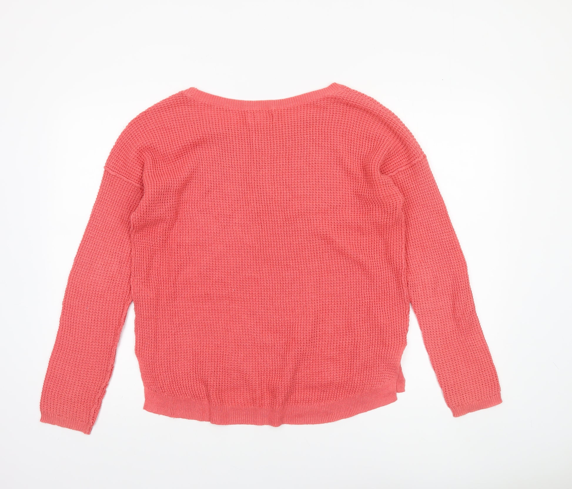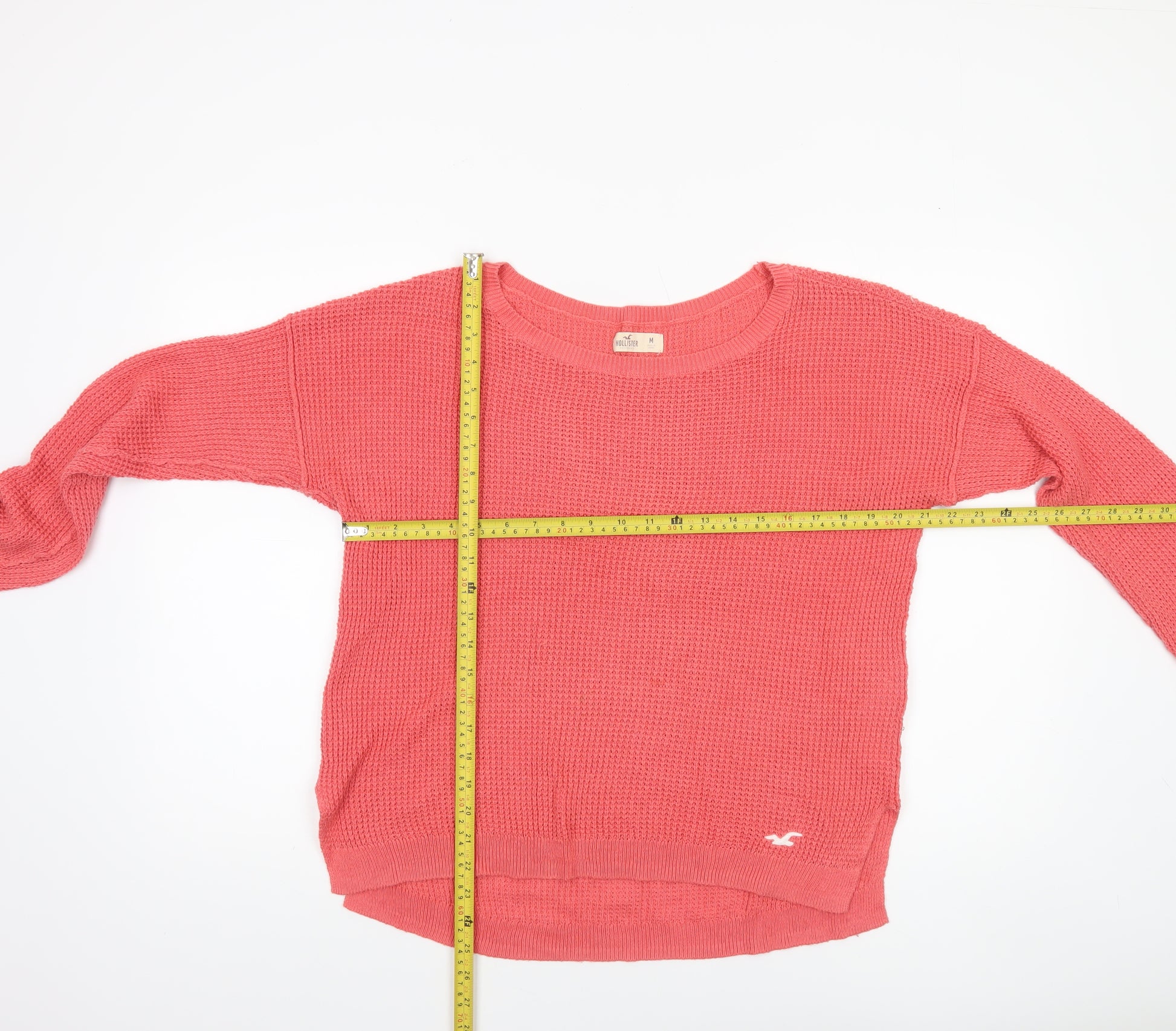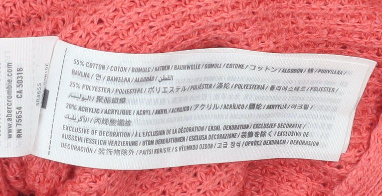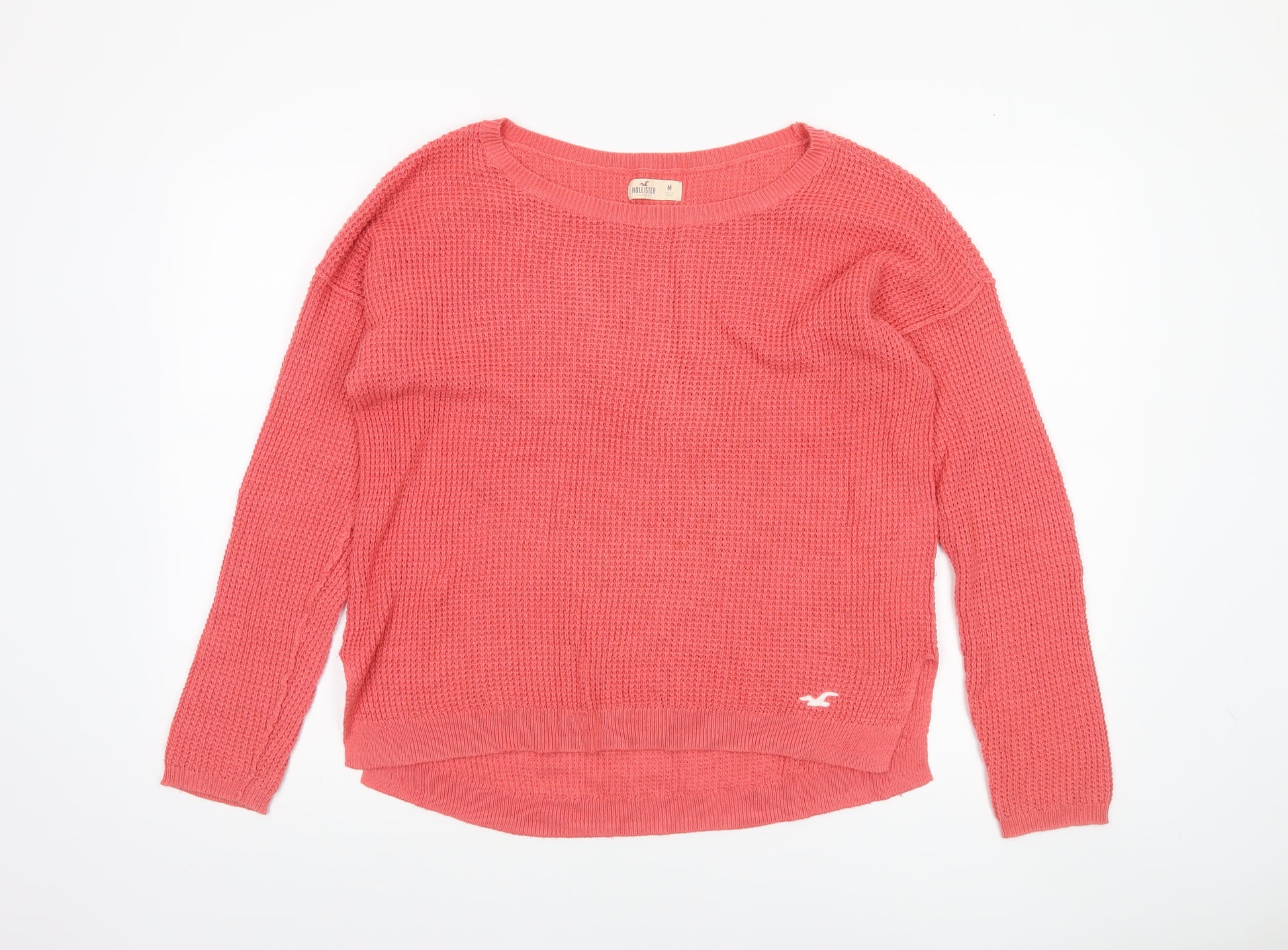 This charming Hollister women's pink knit pullover jumper brings together comfort and casual Californian style. Designed in a medium size, it’s perfect for everyday wear and effortlessly fits into any wardrobe. Crafted in a chunky knit using a soft blend of 55% cotton, 25% polyester, and 20% acrylic, this piece offers lasting durability with a breathable, lightweight texture. The classic crew neck provides a timeless silhouette, while the ribbed hems add extra shape and definition. The subtle Hollister logo detail neatly embroidered near the hem enhances the jumper’s authentic brand identity without compromising its clean, minimalist aesthetic.This regular-fit jumper features long sleeves for added warmth, making it ideal for layering during cooler seasons such as autumn, winter, and early spring. Its bright pink colour evokes a cheerful, youthful look that pairs beautifully with jeans, leggings, or skirts. The soft, textured knit ensures a flattering drape on the figure, providing both comfort and effortless style whether you’re out for a coffee catch-up, a casual office day, or a relaxed weekend stroll.Machine washable and easy to care for, this jumper suits a busy modern lifestyle. Though pre-owned, it remains in excellent condition with no flaws visible upon inspection, ensuring plenty of wear left for its next owner. Priced competitively for second-hand Hollister apparel, it represents outstanding value for a classic high-street casual jumper. A beautiful cosy option for layering, this Hollister pink pullover will quickly become a go-to favourite when you want to stay warm while looking effortlessly chic. Ideal for women who appreciate stylish simplicity with a touch of west coast charm, this jumper promises comfort, practicality, and style in equal measure.