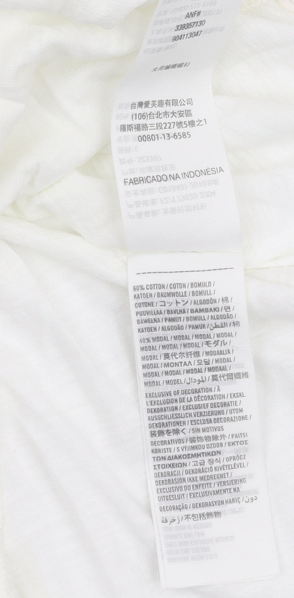 Elevate your casual wardrobe with this classic white T-shirt from Hollister. Crafted from a blend of 60% cotton and 40% modal, this top offers both comfort and breathability, making it perfect for those warm summer days. The soft jersey fabric provides a lightweight feel, while the scoop neck and short sleeves ensure a relaxed fit, ideal for everyday wear. The T-shirt features a solid white design with button accents, adding a subtle touch of detail to its simple yet stylish look. With a classic fit and regular size type, it caters to a variety of shapes, promising comfort and style in equal measure. This versatile piece is perfect for casual occasions, whether you’re heading out for a relaxed day with friends or enjoying a leisurely stroll. Pair it with your favourite jeans or shorts for a timeless summer outfit. Although in excellent condition with slight creasing, please note that it does not come with the original tags. Available now at a competitive price, don’t miss out on this essential addition to your wardrobe.