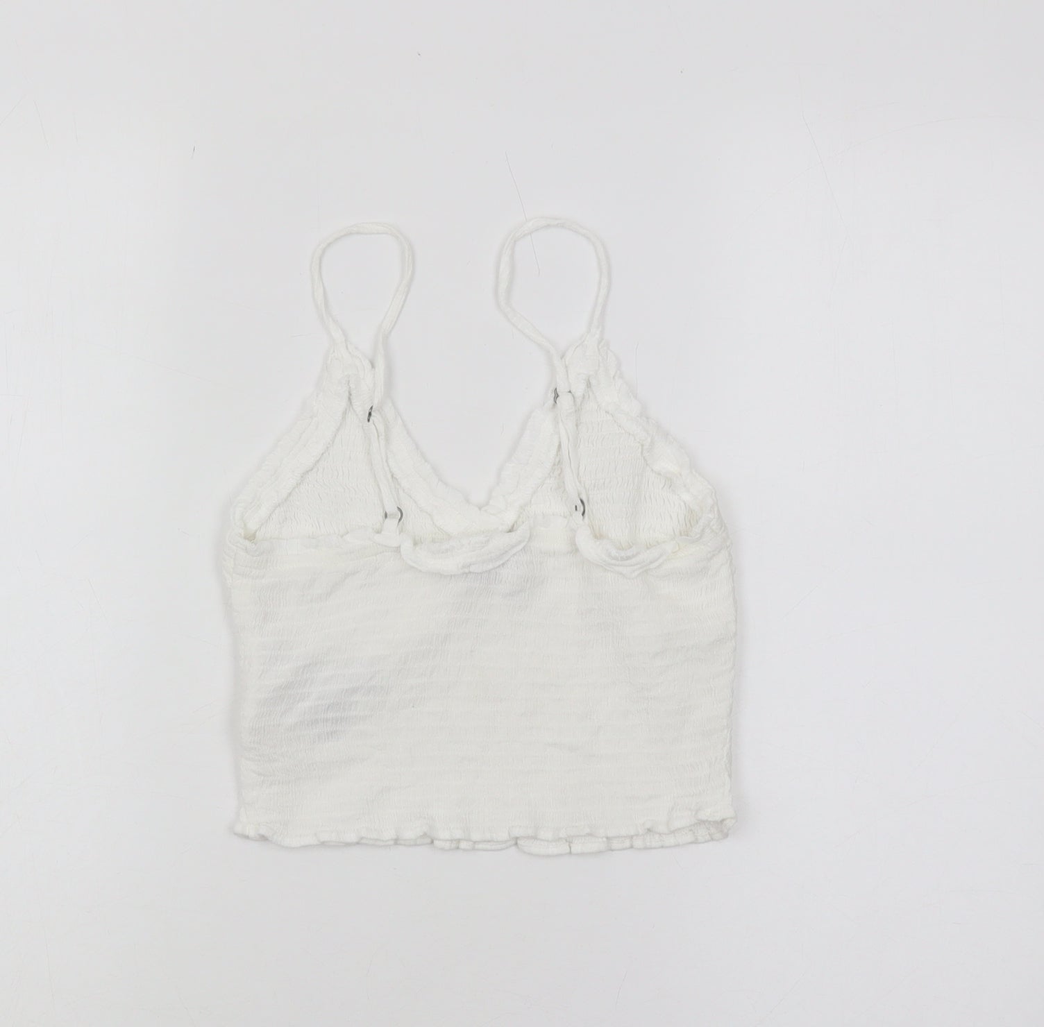 Elevate your summer style with this charming Hollister Women's White Camisole Tank Top in size XS. Perfectly combining simplicity and elegance, this piece is a staple for any wardrobe. Made from 100% viscose, the top features a soft and lightweight fabric that offers comfort and breathability, making it ideal for warm weather. The tank top showcases a classic camisole style with a V-neckline, adding a touch of femininity to your look. Spaghetti straps provide a delicate finish, perfect for layering or wearing on its own for a minimalistic approach. The solid white colour makes it versatile and easy to pair with various bottoms, from denim shorts to skirts. Designed with effortless style in mind, this Hollister camisole top is suitable for casual occasions and everyday wear. Whether you're heading to the beach, running errands, or simply lounging at home, this piece ensures you do so in style. The garment is machine washable, ensuring easy care and maintenance. With its excellent condition and no visible wear, it's ready to become a favourite in your collection. This Hollister top is a must-have for those seeking a blend of comfort, quality, and effortless chic this summer season. Add it to your cart today and enjoy the endless outfit possibilities it offers.