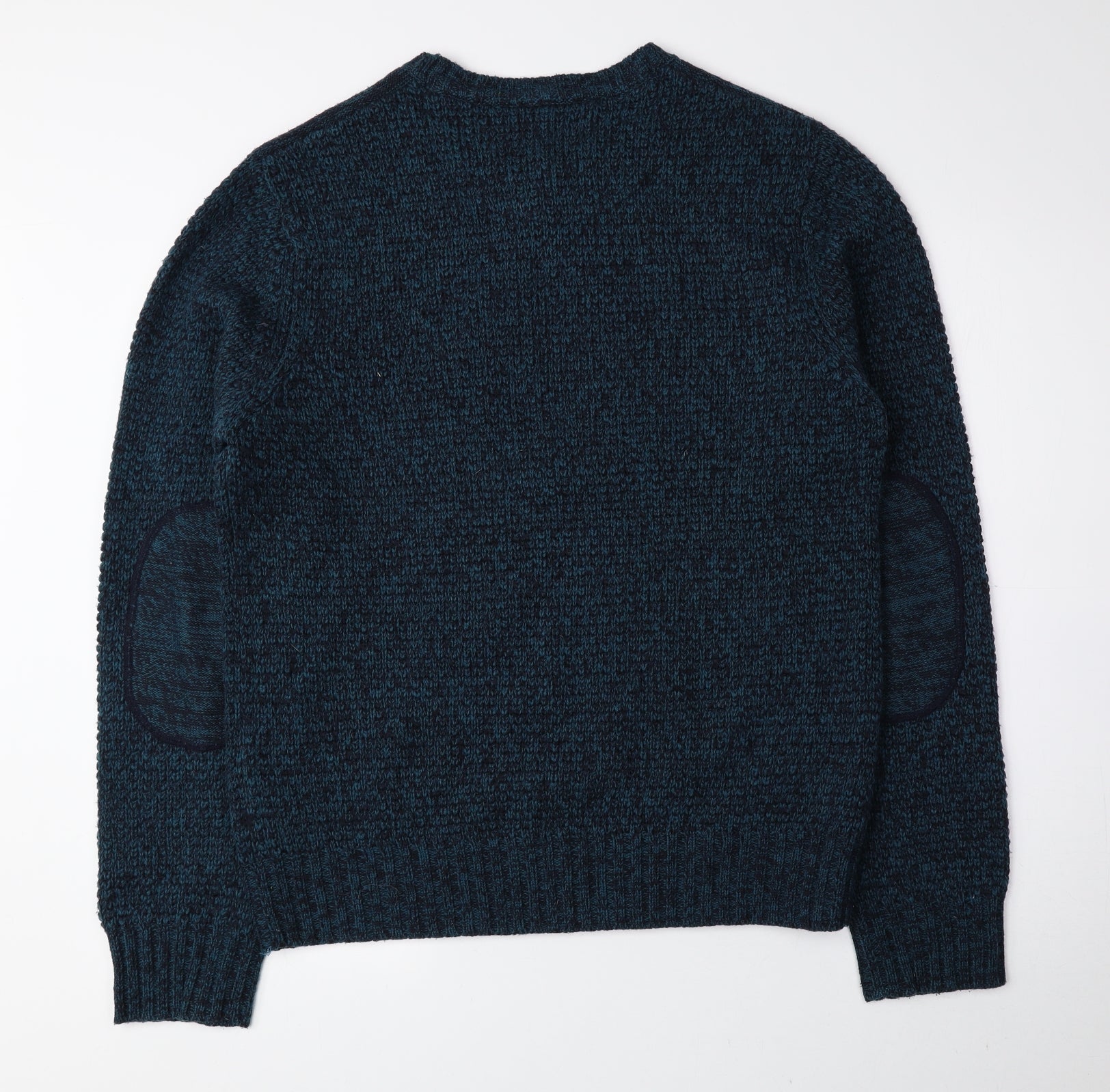 Mens Blue Round Neck Acrylic Pullover Jumper Size L