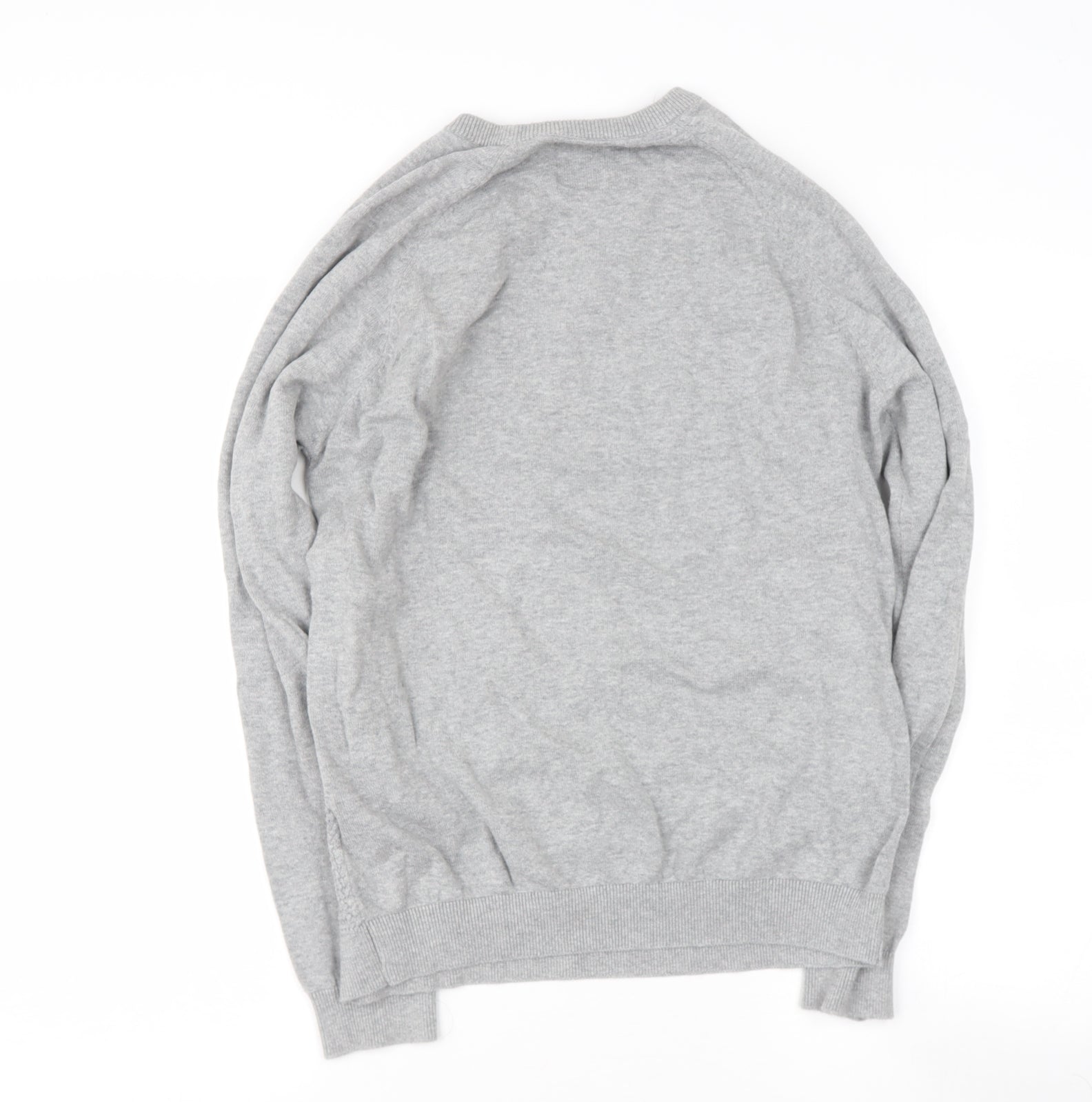 Mens Grey Round Neck Cotton Pullover Jumper Size M