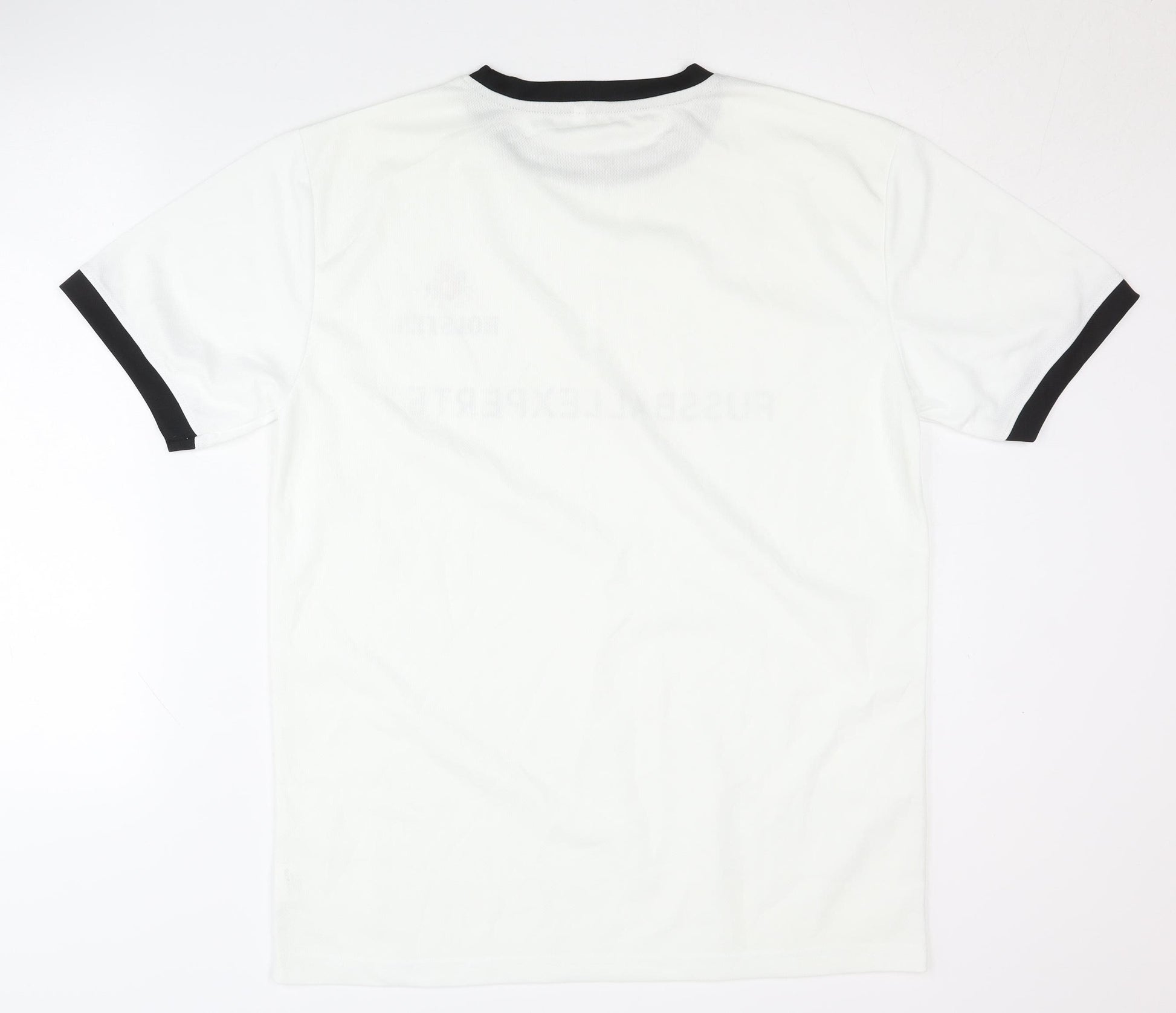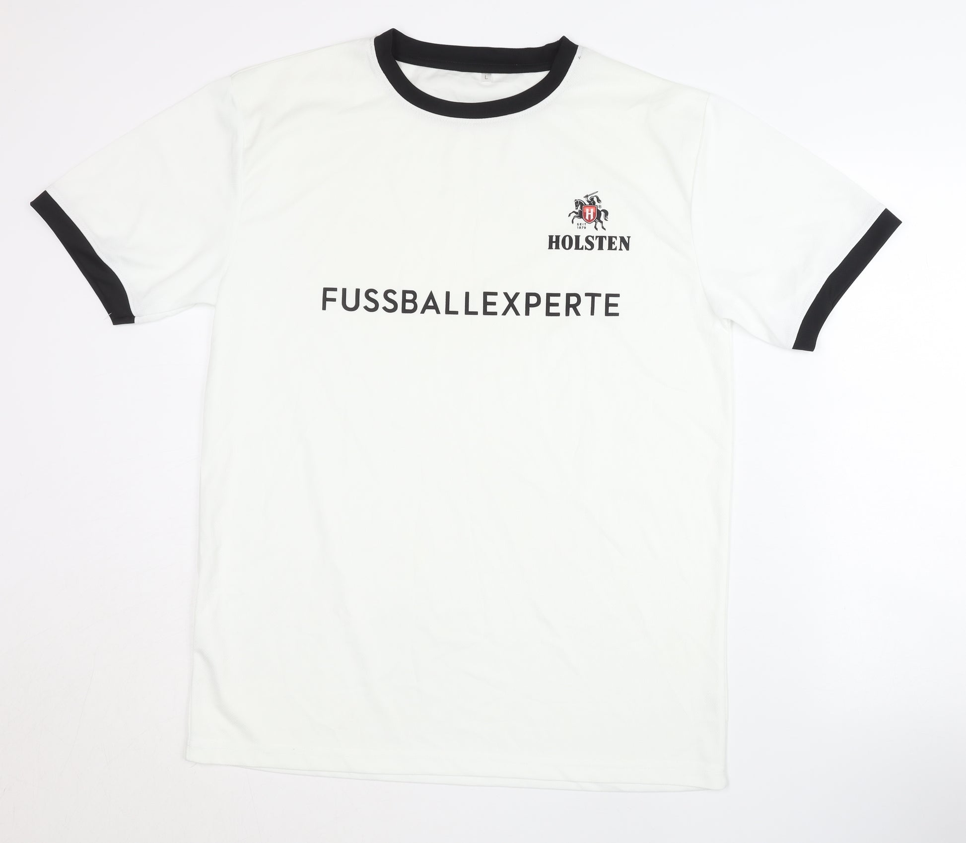 This classic Holsten men's t-shirt is a must-have for any football enthusiast. Designed in a striking white colour with distinctive black accents, this ringer t-shirt exudes a sporty and casual aesthetic. Crafted from 100% polyester, it offers excellent breathability and durability, making it perfect for both active sports and casual wear. The t-shirt features a crew neck and short sleeves, providing ease of movement and comfort throughout the day. Its solid pattern and standout logos translate into a refined yet sporty look that's ideal for football and other activities.This size L t-shirt is tailored for regular fits, ensuring you stay comfortable whether you're on the field or out with friends. With easy-care machine-washable fabric, maintaining it is hassle-free. The pullover closure and casual sleeve type make it convenient to wear, while the jersey fabric type promises a smooth, soft feel against the skin. Perfect for all seasons, this top is suitable for wearing through spring, summer, autumn, and winter, thus adding versatile value to your wardrobe.Infused with a bold logo accent, this Holsten t-shirt aligns with your dynamic lifestyle, offering a unique blend of fashion and functionality. It's designed for activewear occasions and is ideal for football outings, but also excellent for casual, sporty looks on any day. Jump into a game or head out for a casual meet-up looking fresh and confident—this t-shirt has got you covered.