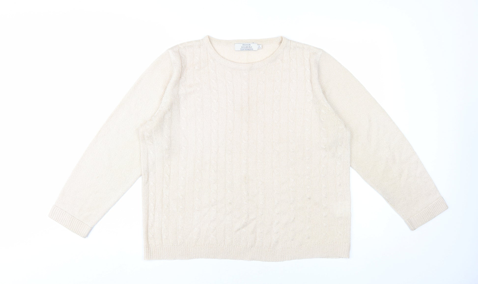 Women's Beige Cable Knit Pullover Jumper M