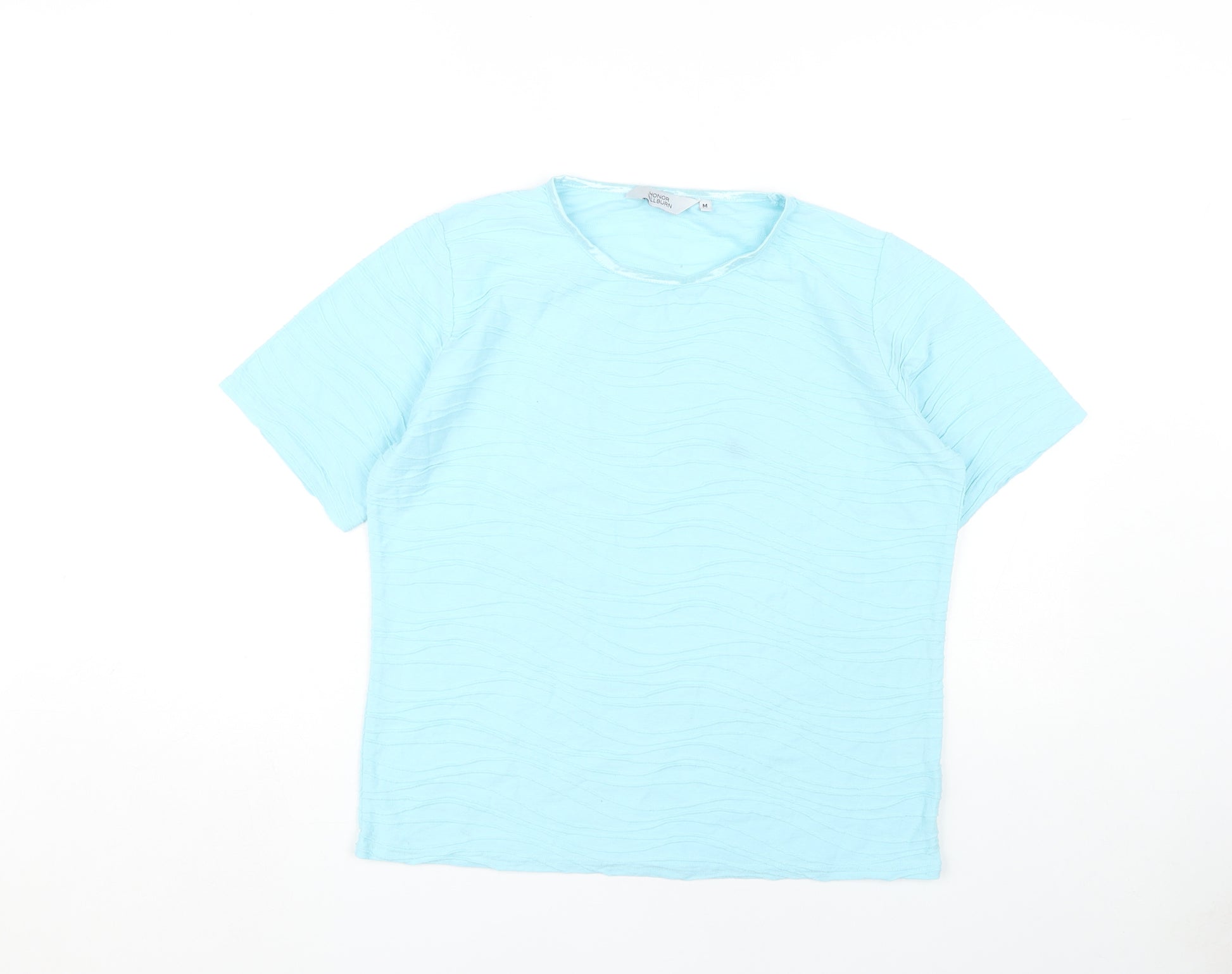 Elevate your casual wardrobe with this chic blue T-shirt by Honor Millburn. Designed for the modern woman, this classic T-shirt features a comfortable regular fit and short sleeves, perfect for everyday wear. Its soothing blue hue gives it a versatile appeal, ensuring it pairs effortlessly with any ensemble. Crafted from a premium blend of 65% polyester and 35% cotton, the fabric promises softness, breathability, and easy maintenance. The solid pattern and crew neck design add to its timeless elegance. Whether you're heading out for a casual outing or enjoying a relaxed day indoors, this T-shirt is your ideal companion. Its excellent condition assures you of quality and value without compromise. Discover seamless style and comfort with this essential piece from Honor Millburn.
