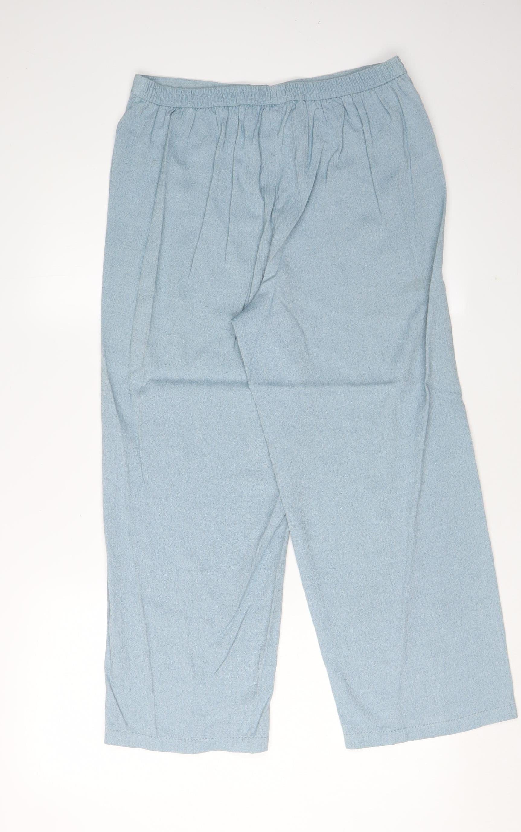 Elevate your wardrobe with these stylish Honor Millburn trousers. Crafted in a soothing blue hue, these trousers are perfect for casual outings and bring effortless elegance to your look. Made from a soft blend of polyester and viscose, they ensure comfort and durability. The wide-leg style adds a touch of chic flair, while the elastic waist offers a comfortable fit for all-day wear. These trousers are versatile enough for both spring and autumn seasons. The flat front and mid-rise design provide a sleek silhouette, making it a flattering choice for various body types. With a regular fit and pull-on closure, getting dressed has never been easier. Whether you're out shopping, meeting friends for lunch, or simply enjoying a day in the park, these trousers pair well with both formal and casual tops, making them a versatile addition to any wardrobe. Enjoy machine-washable convenience for everyday practicality. With no visible sales tags, these trousers remain in excellent condition, showcasing slight wear that reflects their exquisite craftsmanship. A perfect choice for those seeking comfort combined with timeless style.