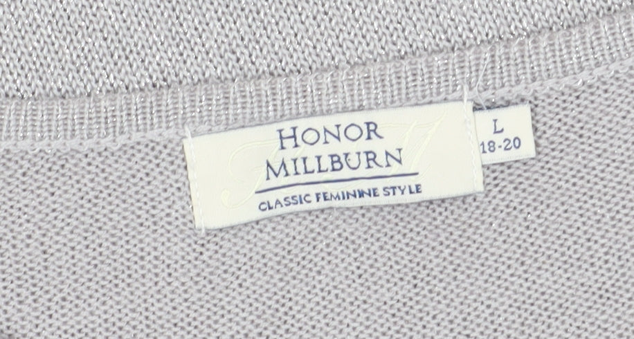 Enhance your wardrobe with this elegant Honor Millburn Women's Pullover Jumper, designed for style and comfort. Tailored in a subtle grey tone, this knit jumper is crafted from a luxurious blend of viscose and nylon, providing a soft and breathable fit that's perfect for casual occasions. Its long sleeves offer warmth while the beaded accents add a touch of sophistication, making it an ideal choice for the autumn and winter seasons. The jumper features a classic round neck, ensuring a timeless appeal, and is machine washable for easy maintenance. Perfect for women seeking a blend of comfort and elegance, this regular fit jumper accommodates size L (18-20) effortlessly. Whether you're dressing up for a casual day out or enjoying a cozy evening, the Honor Millburn jumper is a fantastic addition to any outfit. Embrace the subtly chic design and elevate your everyday look with this versatile piece, ideal for layering with your favourite accessories. Don't miss out on this beautiful garment, known for its unique combination of style and functionality.
