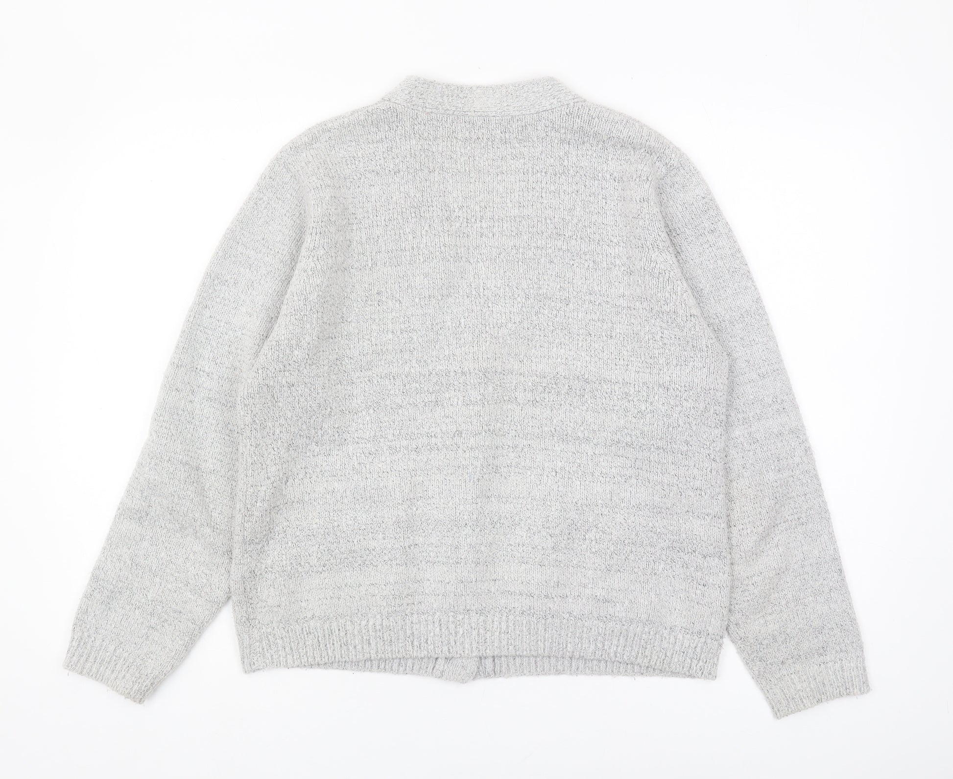 Elevate your casual wardrobe with this stylish and comfortable Honor Millburn Women's Grey V-Neck Cardigan, size M. Perfectly designed for the modern woman, this cardigan is crafted from a soft acrylic and polyester blend, ensuring warmth and durability through the cooler months of autumn and winter. Its classic V-neckline and long sleeves make it a versatile addition to any outfit, from casual jeans to dressier skirts. The knit fabric and button accents add a touch of sophistication, while the grey colour makes it easy to pair with various tones. This cardigan boasts a regular fit for comfort and ease of movement, making it ideal for casual occasions. Machine washable for easy care, this piece is both practical and stylish. Offered in excellent condition, this cardigan shows no visible signs of wear, ready to become your new go-to piece. Priced competitively, it provides both value and style that is sure to enhance your wardrobe.