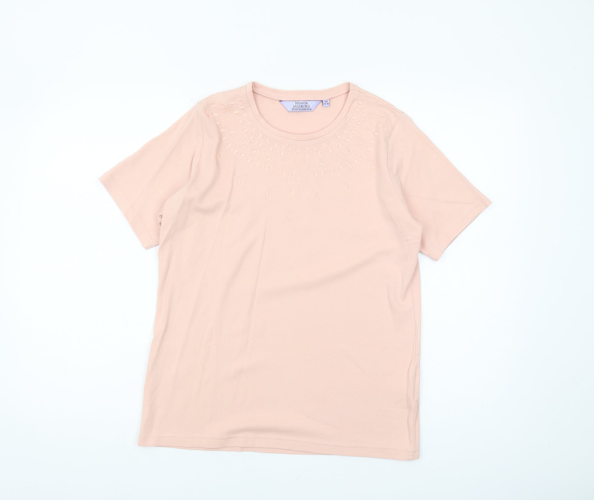 Embrace effortless style with this Honor Millburn Women's Pink Cotton T-Shirt in Size M, perfect for your summer wardrobe. Crafted from 100% cotton, this breathable and soft T-shirt promises all-day comfort while keeping you looking chic. The classic crew neck design paired with short sleeves makes it a staple for casual outings, beach days, or relaxed weekends at home. Featuring delicate embroidery accents, this pink T-shirt adds a subtle touch of elegance to an otherwise simple, solid pattern. Whether dressed up with a statement necklace or worn casually with your favorite pair of jeans, it offers limitless styling options. Ideal for building layered outfits in spring and summer, this T-shirt is a versatile addition to your wardrobe. Designed for women who appreciate both comfort and style, its relaxed fit caters to varied body shapes, ensuring you can move freely without compromise. Machine washable for fuss-free garment care, this piece is as practical as it is stylish. Make the Honor Millburn T-Shirt your go-to choice for those casual occasions where looking effortlessly stylish is key.