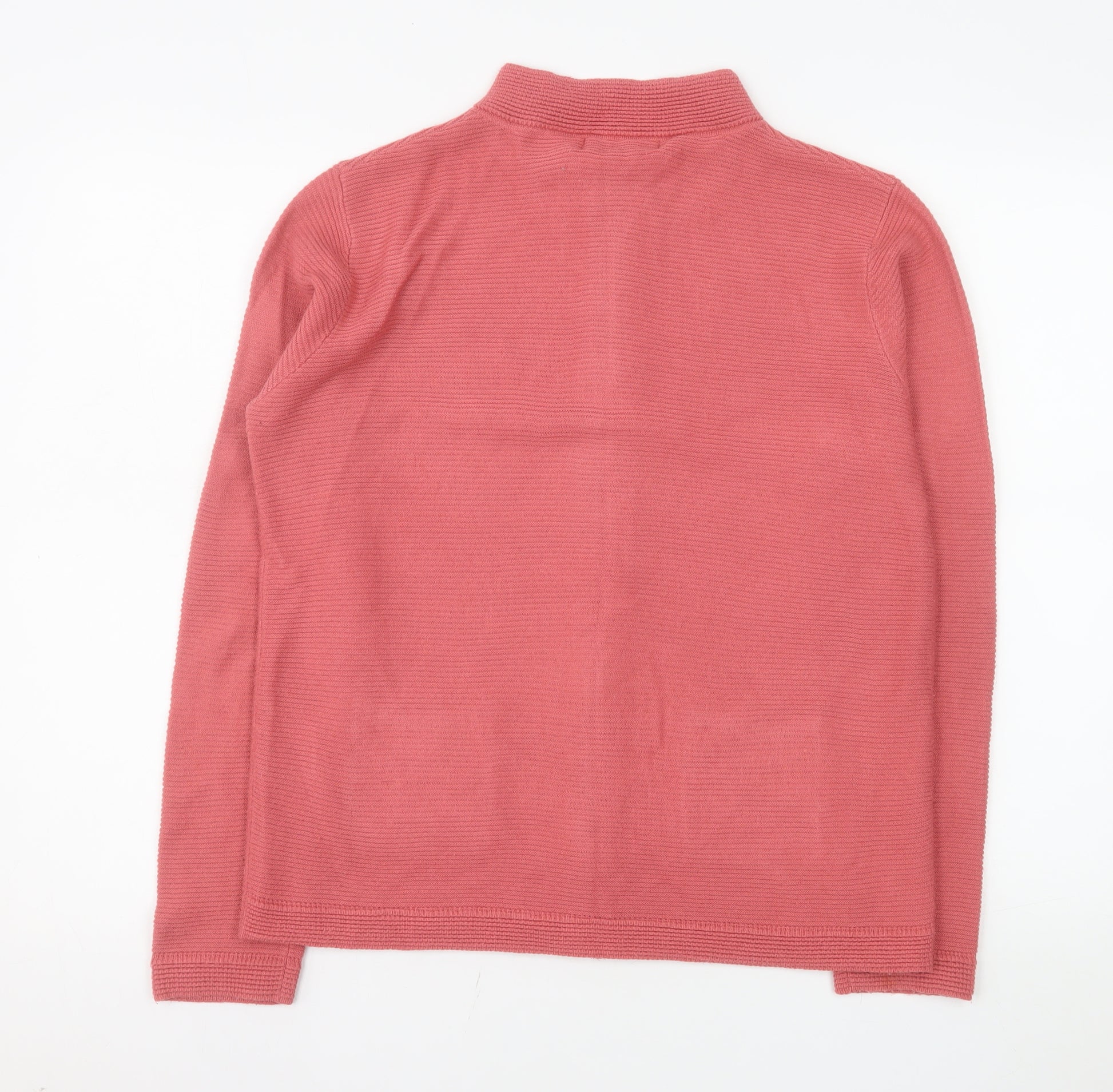Add a touch of warmth and casual sophistication to your wardrobe with this Honor Millburn women's pink knit zip-up jacket. Crafted entirely from soft acrylic, it provides a cosy, lightweight feel that’s ideal for layering during transitional seasons like spring and autumn. The rib-knit texture and subtle structure of the fabric lend a comfortable yet polished appearance, making it a versatile piece for everyday wear. Designed with long sleeves and a short jacket length, it offers just the right coverage for a balanced silhouette. The full front zip closure allows for easy wear and flexible styling, while two front patch pockets add practicality and charm. Presented in a flattering pink tone, this jacket complements a variety of outfits, from casual jeans and a t-shirt to smarter trousers or skirts. The regular fit ensures a comfortable shape without clinging, ideal for relaxed days and gentle outings. Though previously owned, the jacket remains in excellent condition with only minimal signs of wear, showing no noticeable flaws or damage. Perfect for women seeking classic style and everyday comfort, this Honor Millburn knit jacket brings together durability, femininity, and understated elegance. Machine washable for easy care, it’s a staple that blends style and convenience effortlessly. A fantastic find for those who appreciate quality layering essentials from trusted names in knitwear.