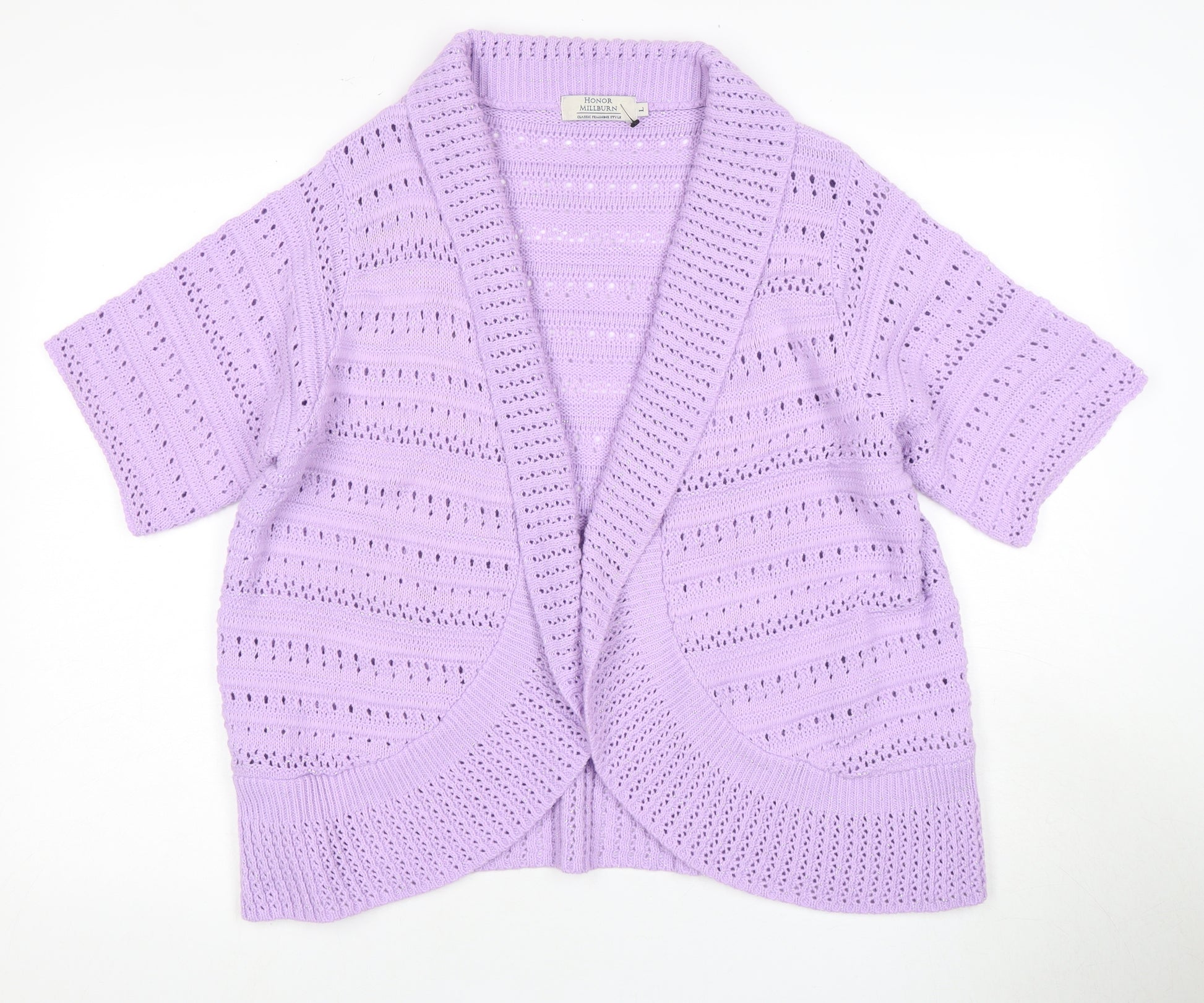 Elevate your wardrobe with this charming Honor Millburn Women’s Cardigan in a delightful purple hue. Perfect for casual outings, this cardigan is crafted with a blend of Acrylic, Nylon, and Metallic fibers, offering both comfort and a subtle sheen. Its open-knit design provides a light and airy feel, making it ideal for layering during the spring and autumn months. The cardigan features short sleeves and a relaxed fit, giving you the freedom to move with ease. Embrace the timeless style of this versatile piece, which pairs beautifully with jeans or skirts. Whether you're stepping out for a brunch date or enjoying a leisurely afternoon, this cardigan will keep you looking effortlessly chic. Don't miss the chance to add this elegant piece to your collection. Suitable for a variety of occasions, this Honor Millburn cardigan is a staple for any fashion-conscious individual. Snag it now and enjoy the perfect blend of style and comfort.