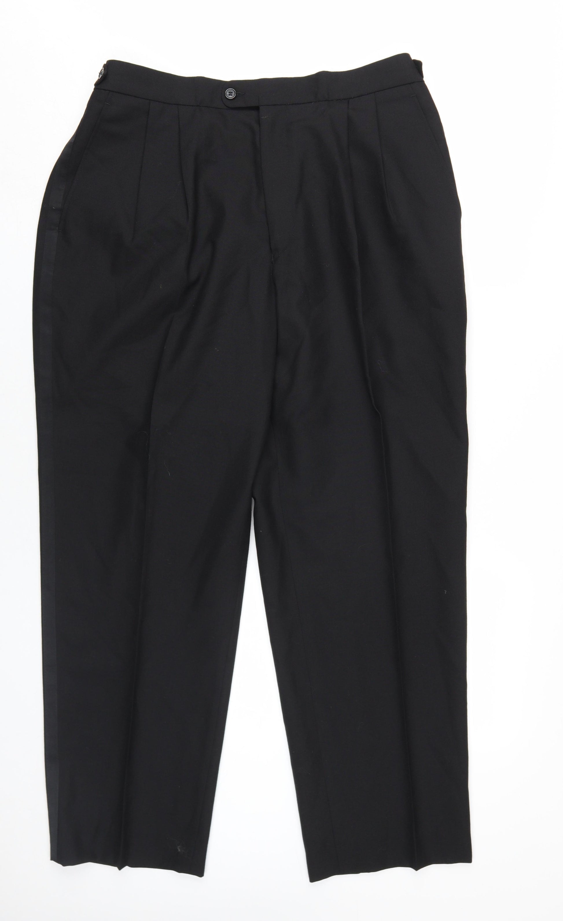Mens Black Polyester Tuxedo Suit Trousers Size 38 Regular