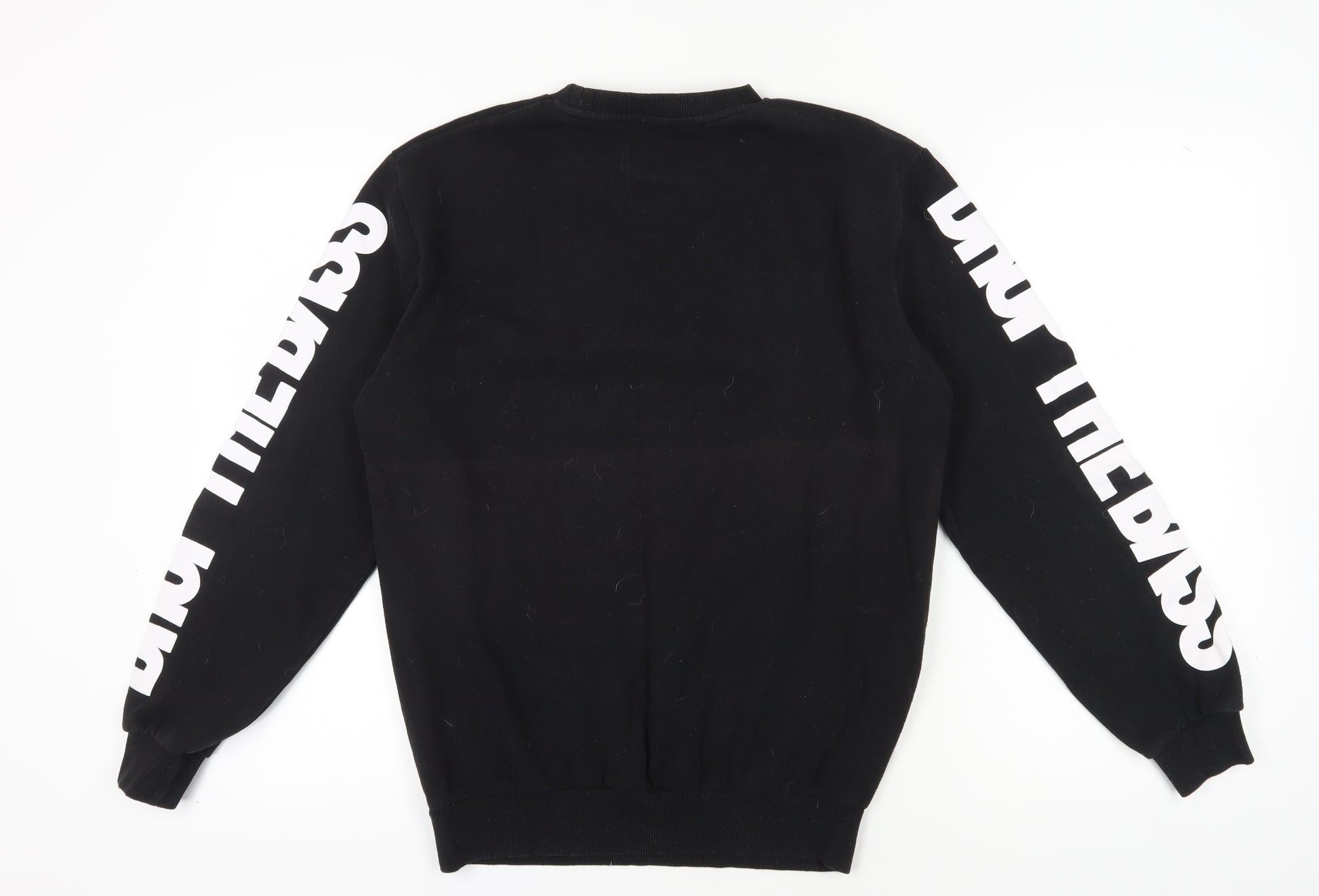 Step up your style game with this House Brand Men's Sweatshirt, a perfect blend of fashion and comfort. Crafted in a striking combination of black and white, this pullover exudes a modern, bold aesthetic ideal for music enthusiasts. Worn in a regular fit, the sweatshirt ensures maximum comfort whether you're lounging at home or stepping out for a casual day out. Its crew neck design and long sleeves make it a perfect choice for the colder seasons of autumn and winter. The sweatshirt, accented with a bold logo and graphic print, is tailored for those who love to express their passion for music through their attire. Constructed from a soft jersey fabric, the blend of 60% cotton and 40% polyester promises durability and ease of movement. Despite its slight discolouration on the front, the overall condition remains very good, ensuring you stand out in style. Ideal for machine wash, this garment blends fashion with practicality. Don't miss out on this stylish piece that combines comfort with an edgy, musical vibe.