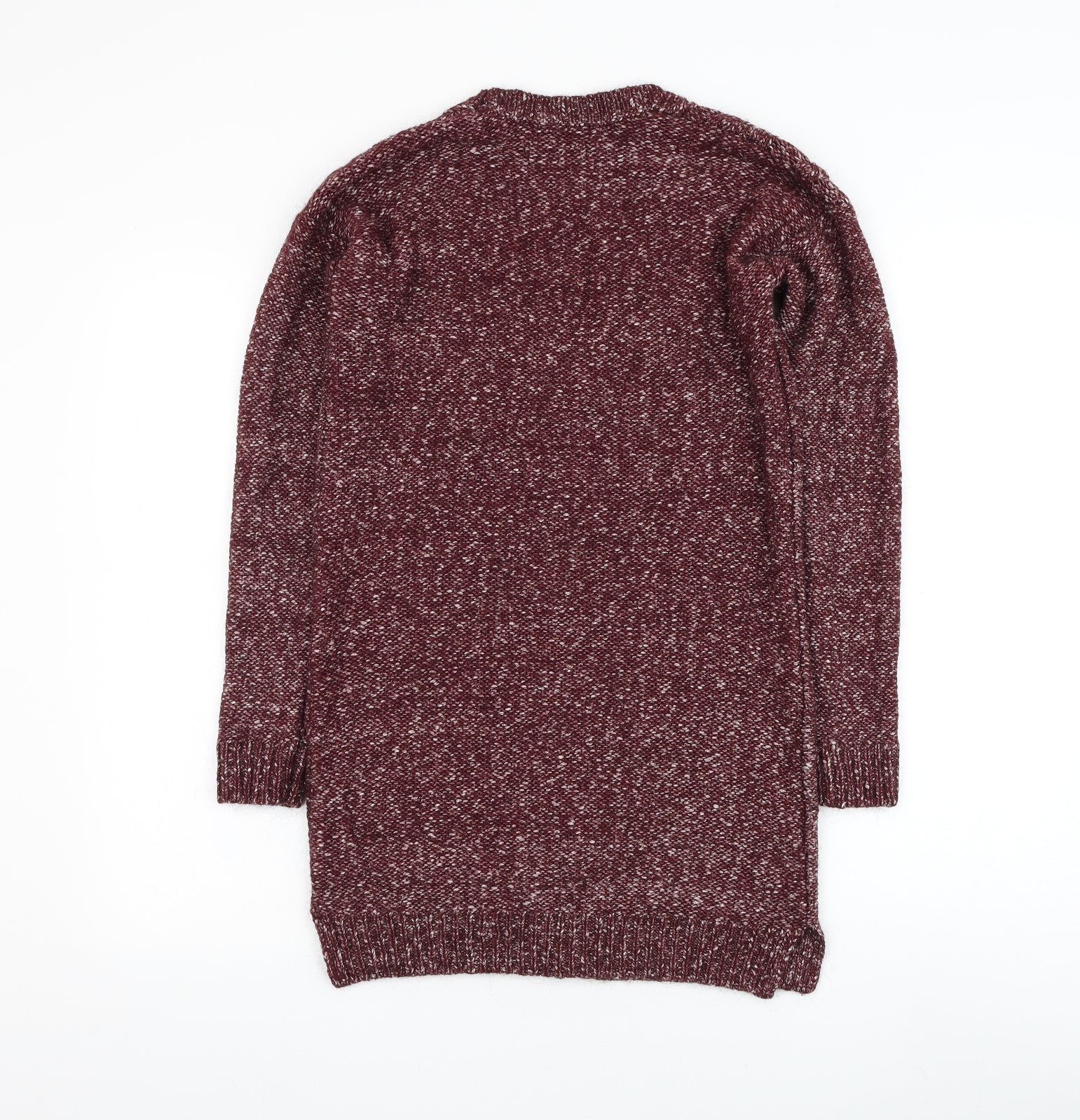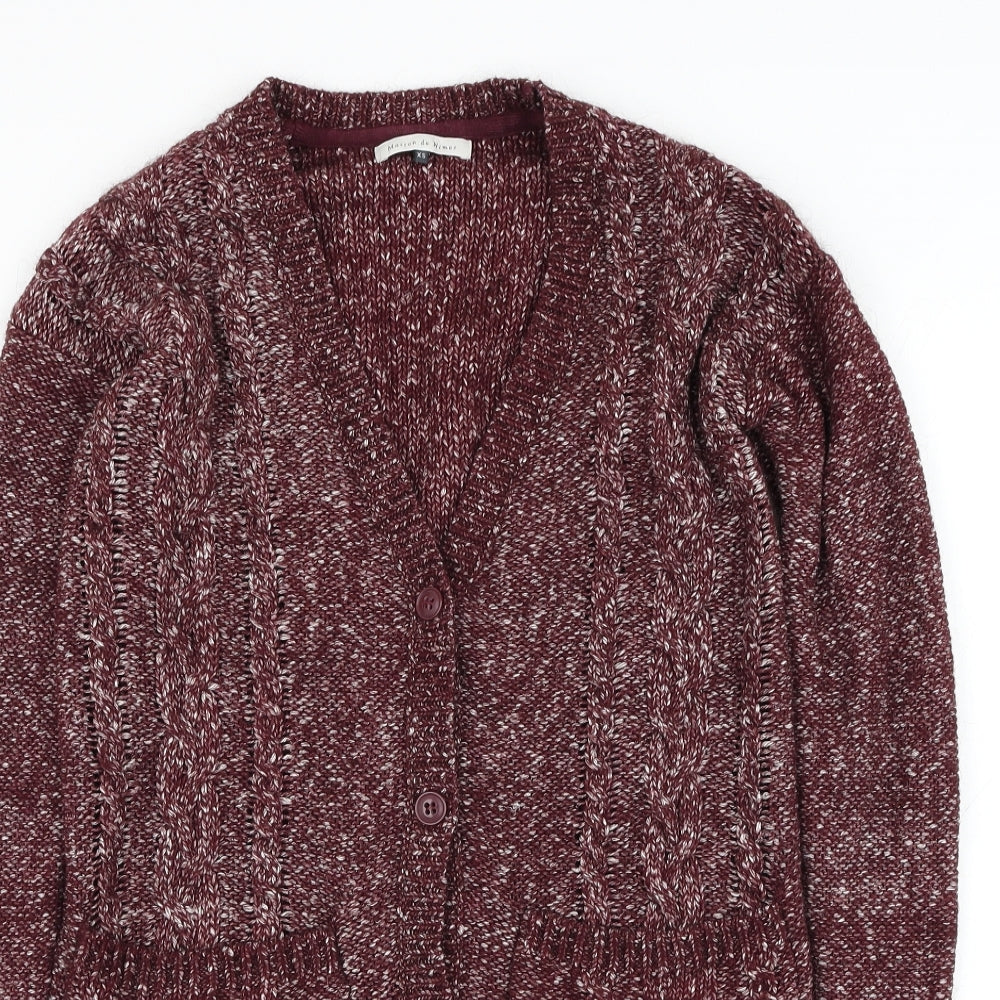 Womens Red V-Neck Cotton Cardigan Jumper Size XS