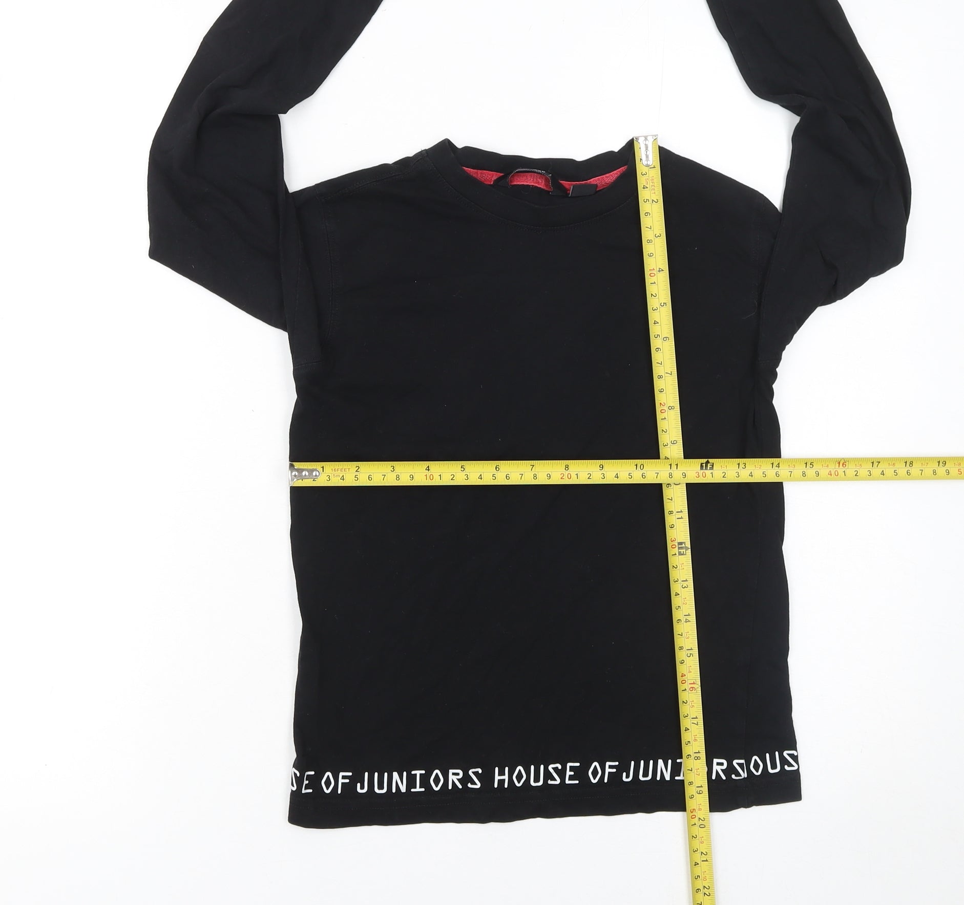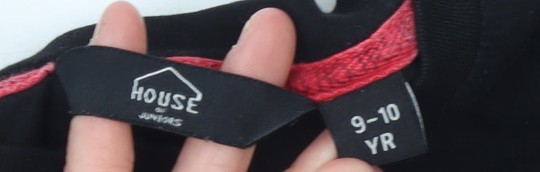This stylish black long-sleeve T-shirt by House of Juniors is perfect for girls who love comfortable yet chic everyday fashion. Designed in a classic crew neck shape, the top is crafted from soft jersey fabric that feels gentle against the skin, making it ideal for all-day wear. Its relaxed fit ensures ease of movement, while the breathable 100% cotton material keeps your child cool and comfortable in every season. The simple design is elevated by a bold House of Juniors logo printed in white lettering along the hem and cuffs, adding a modern touch that gives this otherwise basic tee a trendy, streetwear-inspired edge. Perfect for casual occasions, school days, or weekend outings, this versatile black top pairs effortlessly with jeans, leggings, or skirts for a variety of looks—from sporty to comfortably cool. The solid black colour makes it a timeless wardrobe essential, and the high-quality cotton ensures durability even after multiple washes. In excellent pre-owned condition with no visible defects or stains, it’s a great find for parents looking for both value and style. Machine washable for easy care, this T-shirt blends signature branding with everyday practicality, making it a must-have piece that’s ready to wear for any season. Practical, durable, and fashion-forward, this House of Juniors top strikes the perfect balance between comfort and style for active kids who love to look good while staying comfortable. Whether worn as a standalone statement piece or layered under a jacket during cooler months, this top promises great wearability and effortless style that never goes out of trend.