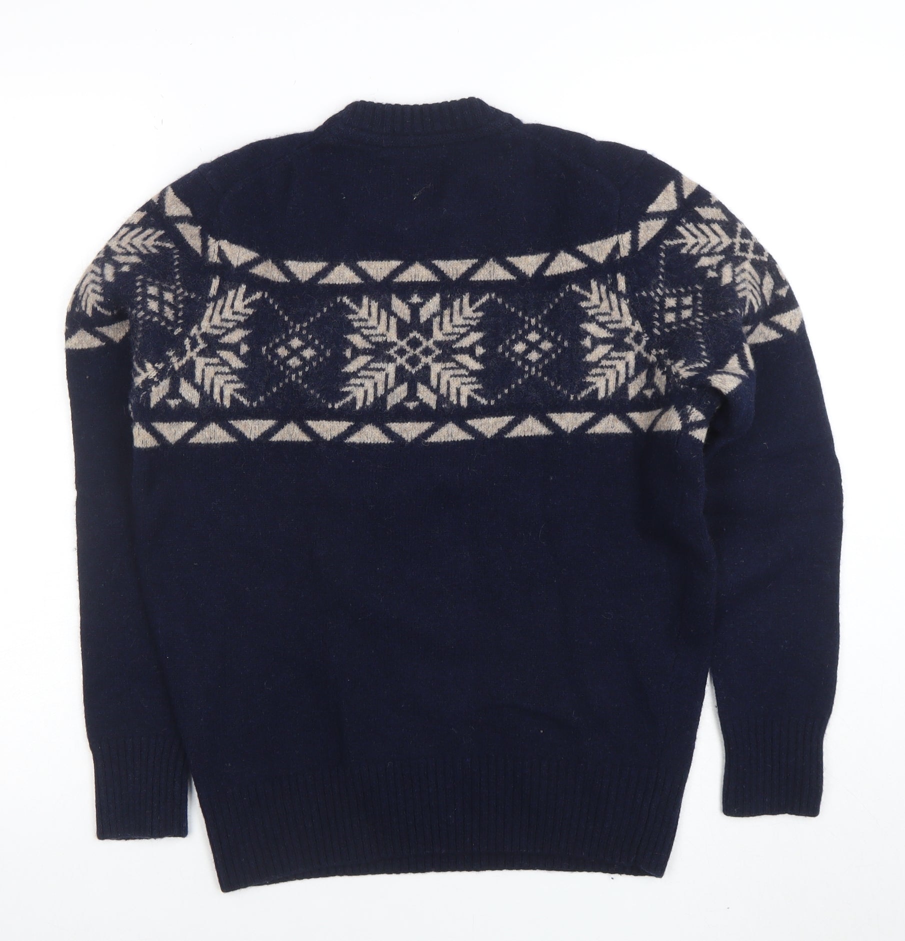 Men's Blue Fair Isle Wool Blend Crew Neck Jumper Size S