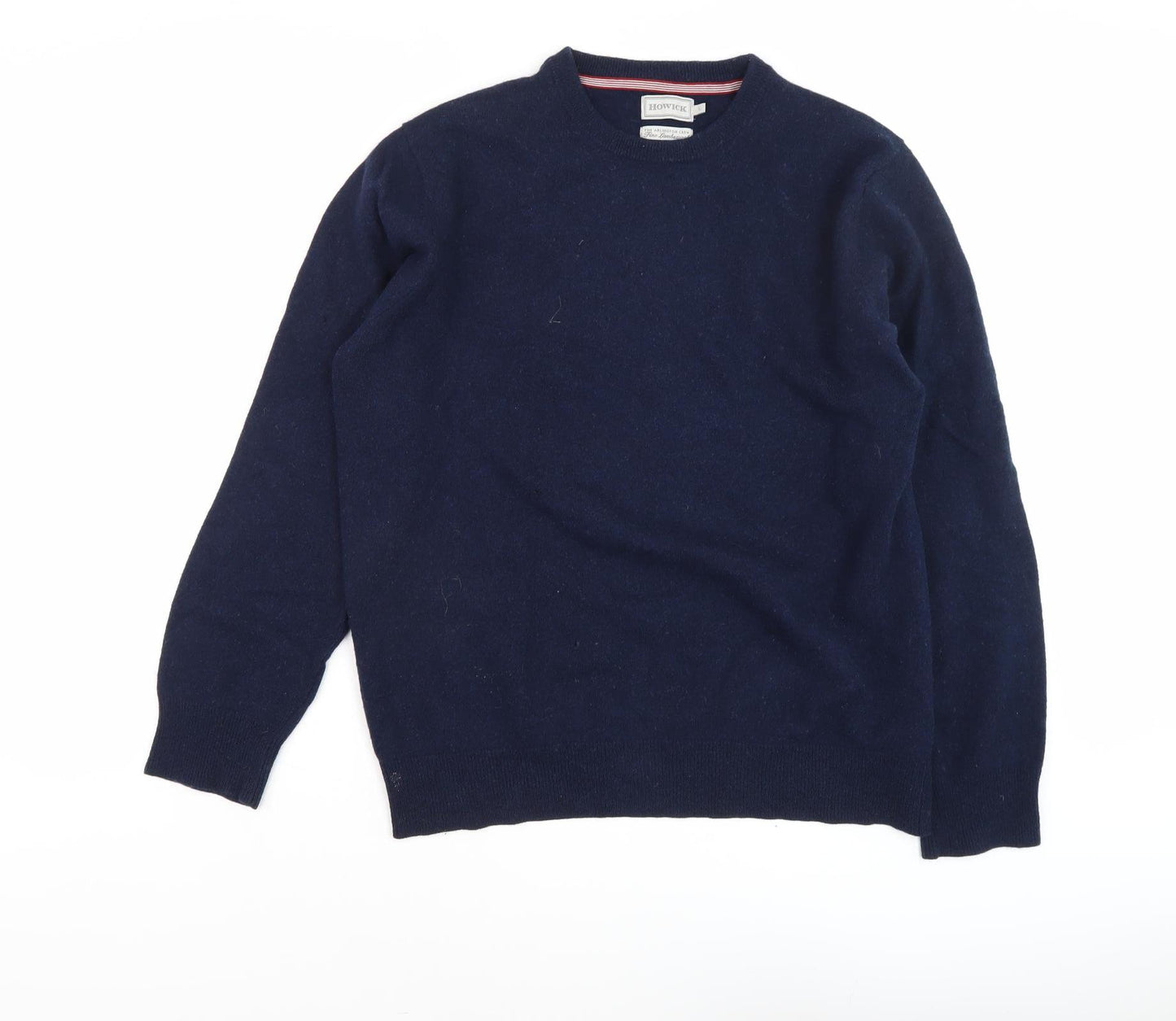 Elevate your casual wardrobe with this classic Howick Men’s Pullover Jumper, designed for both comfort and style. Crafted from 100% fine lambswool, this jumper provides both warmth and softness, making it an ideal choice for the cooler months. The luxurious knit ensures a tight-fit style, offering a straightforward, timeless appeal for any casual outing. Its rich blue colour complements a variety of outfits, providing versatile wear throughout the autumn and winter seasons. The jumper features a crew neckline, a staple design that enhances its classic look. The long sleeves are finished with ribbed cuffs to help maintain its shape and provide extra comfort. As a regular fit garment, it sits comfortably on the shoulders while allowing easy movement, making it a perfect addition to a laid-back weekend ensemble. Ideal for casual occasions, pair this tight-knit blue jumper with chinos or jeans for a relaxed yet polished look. Despite being listed in excellent condition, minor pilling can be observed, a normal occurrence with woolens that does not impact the overall appearance or comfort of the jumper. Find the perfect combination of timeless charm and everyday functionality with this essential Howick jumper, and refresh your autumn wardrobe effortlessly.