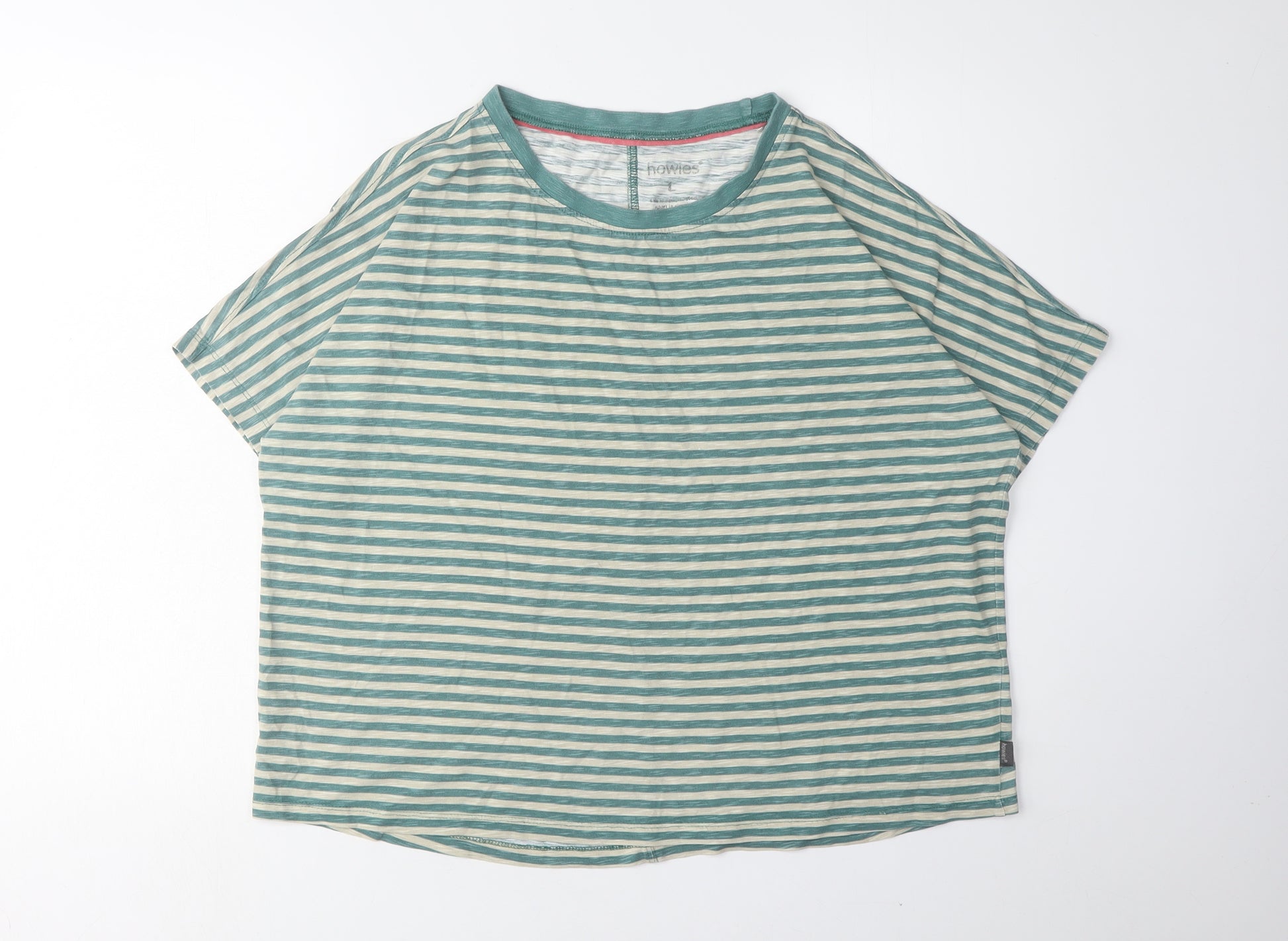 Howies Women's Green Striped T-Shirt, Size L, Relaxed Style