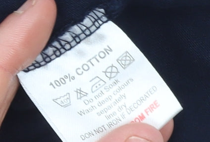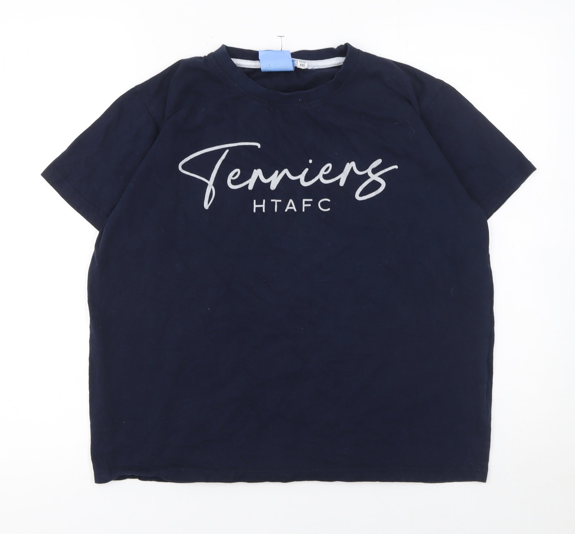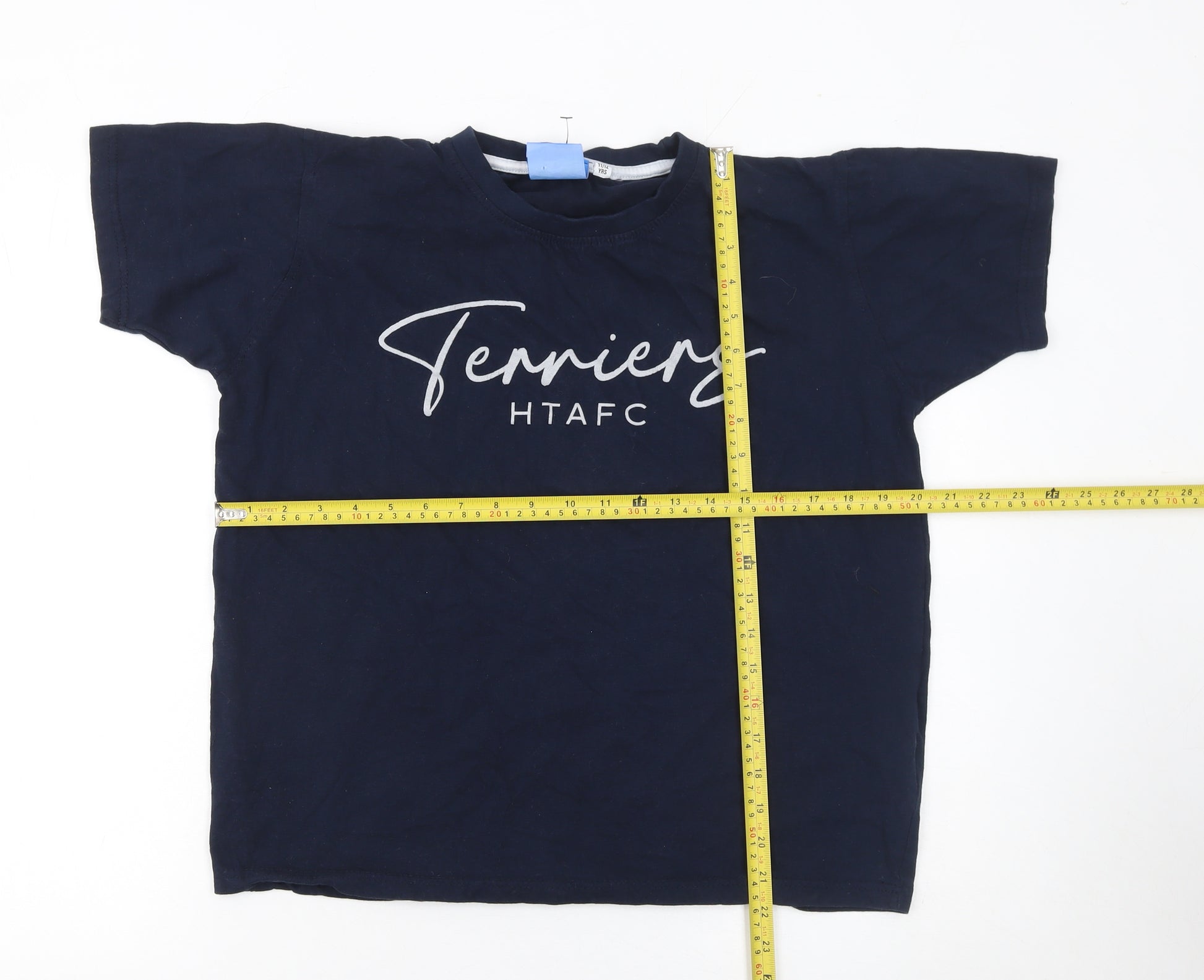 Show off your support for Huddersfield Town with this official HTAFC boys’ t-shirt, perfect for young fans of the Terriers. Designed in a rich navy blue colour, this short sleeve t-shirt features the bold 'Terriers HTAFC' logo printed on the front, making it instantly recognisable to football enthusiasts. Made from 100% cotton, the fabric feels soft and breathable, ensuring all-day comfort whether worn at school, on the pitch, or while cheering for the team. The classic crew neckline and relaxed regular fit allow easy movement, whilst the pullover design makes dressing fast and simple. This top is machine washable for easy care and ideal for everyday casual wear. Its medium-weight jersey construction adds durability, maintaining shape wash after wash. Perfect for the summer months or layering under a hoodie during colder days, this versatile top combines team pride with practical comfort. Measuring approximately 80cm around the chest, it fits standard UK boys aged 11–12 years comfortably. Although pre-owned, this garment remains in very good condition with minimal wear and no flaws, ready to be proudly worn again. A must-have wardrobe staple for young Huddersfield Town supporters who want to sport their loyalty in style. Great as a thoughtful gift or casual addition to a fan’s collection, this HTAFC t-shirt pairs easily with jeans, shorts, or athletic wear. Get your boy kitted out and ready to back the Terriers in classic sporty style at an affordable price.