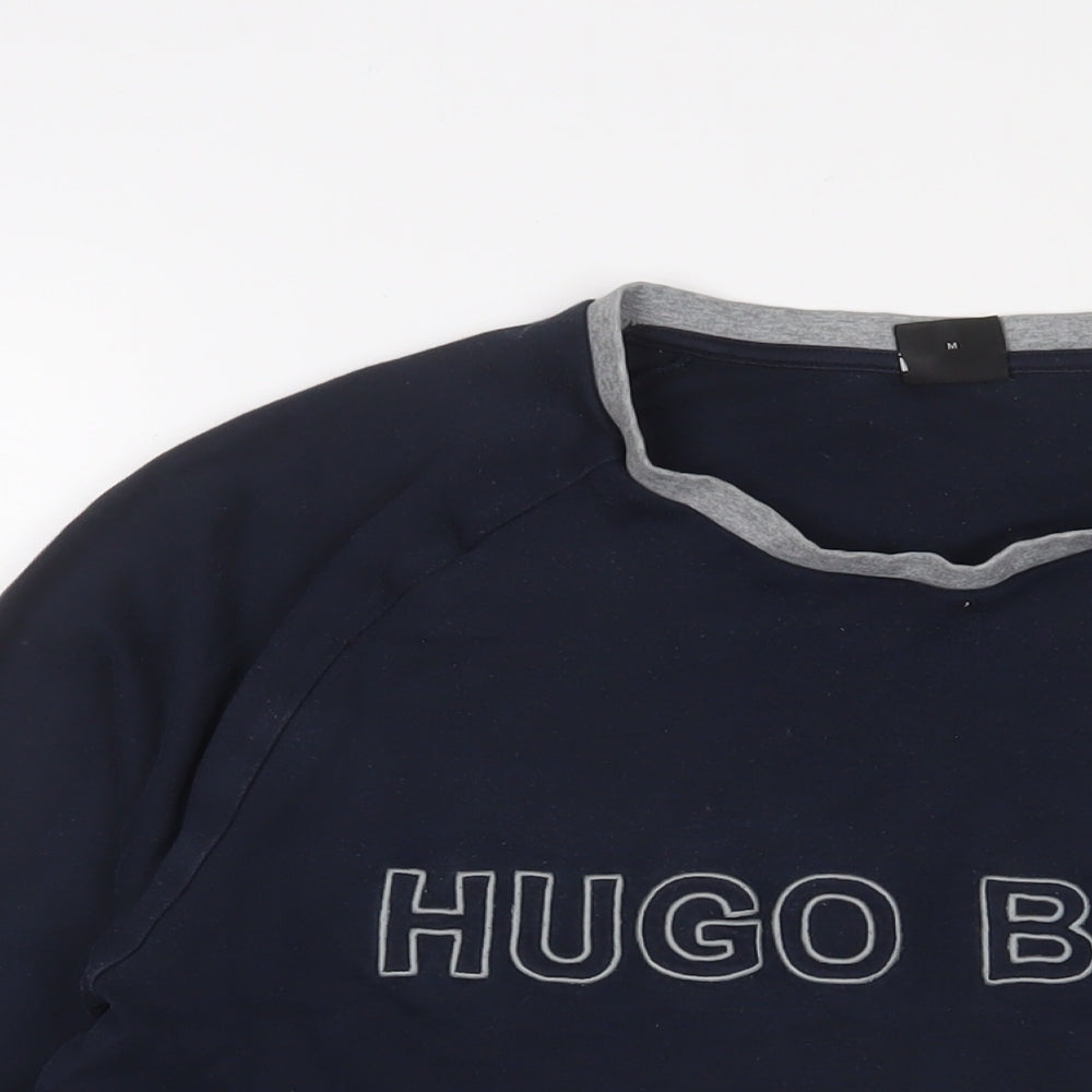 Mens Blue Cotton Pullover Sweatshirt Size M - Logo, Embroidered