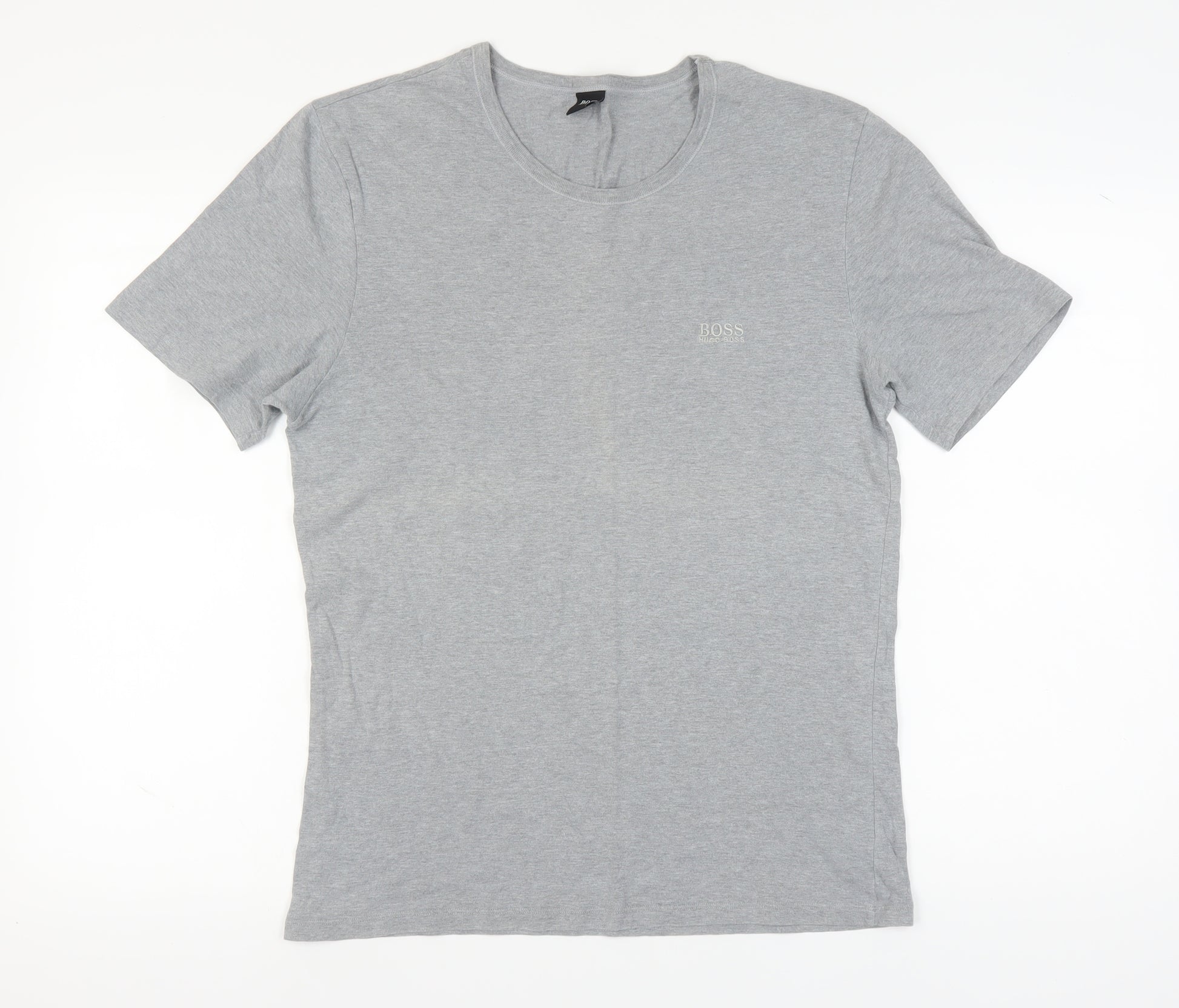 Elevate your casual wardrobe with this premium Hugo Boss Men's Grey T-Shirt. Crafted from 100% cotton, it offers a soft and breathable feel perfect for everyday wear. The solid grey colour is versatile, making it easy to pair with various outfits. Featuring a classic crew neck and comfortable short sleeves, this t-shirt is an essential piece for every man. The subtle logo accent on the front adds a touch of sophistication, ensuring you look effortlessly stylish. Available in size L, this regular fit t-shirt flatters most body types. It's machine washable for easy care, making it a practical choice for the modern man. Whether you're dressing down for the weekend or heading out for a casual get-together, this Hugo Boss t-shirt is the perfect choice. Enjoy comfort without compromising on style with this timeless piece. Add it to your collection today and enjoy the quality and design synonymous with the Hugo Boss brand.