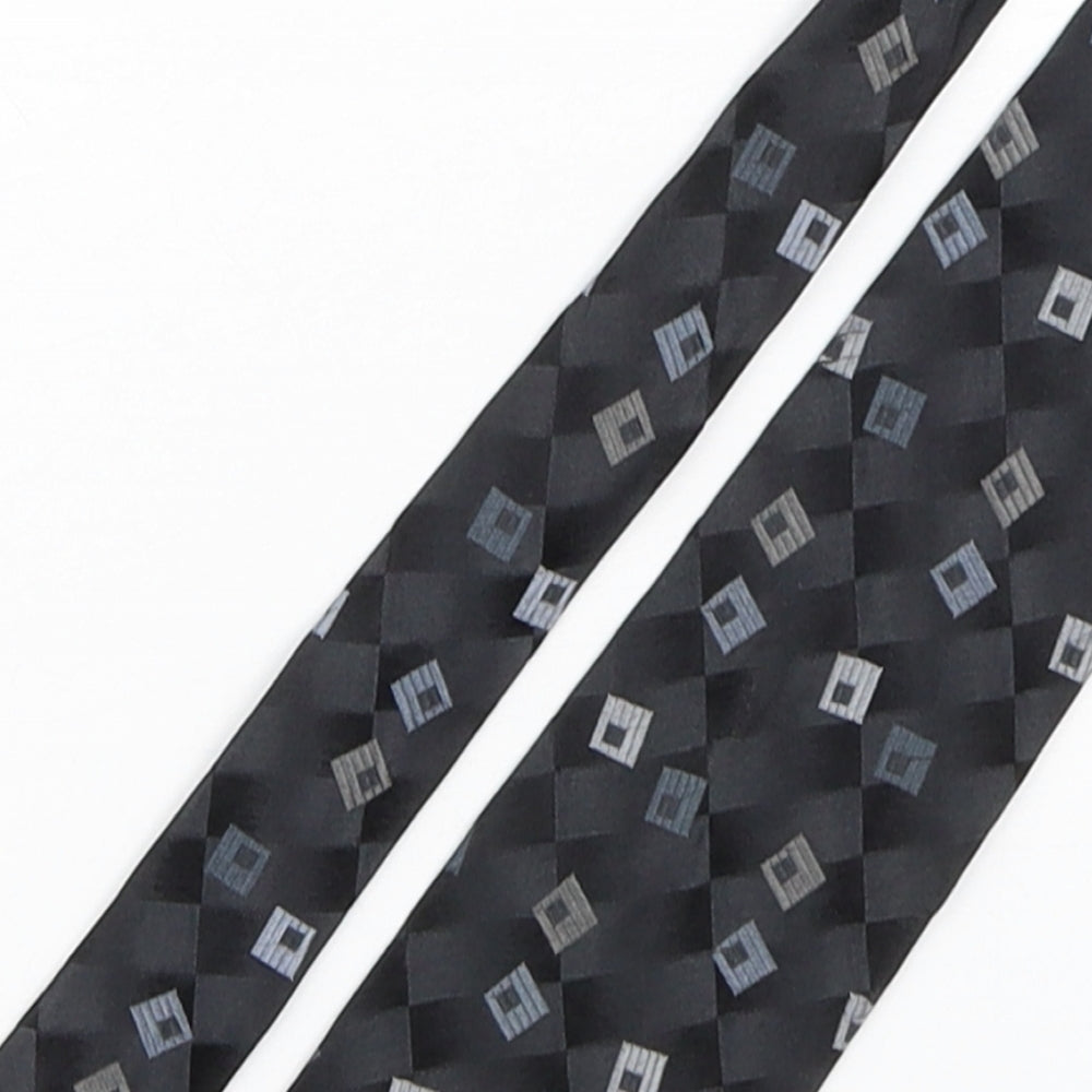 Mens Grey Geometric Silk Pointed Tie One Size