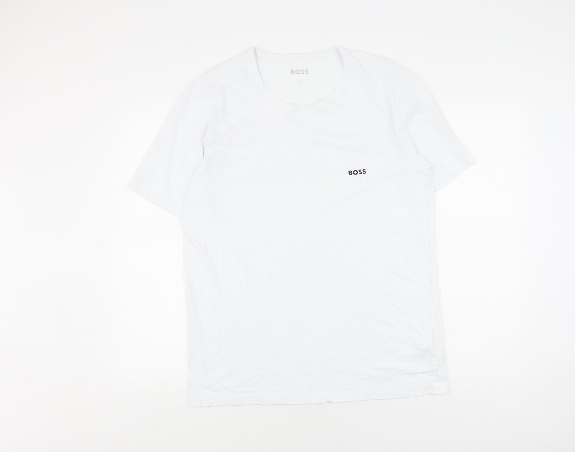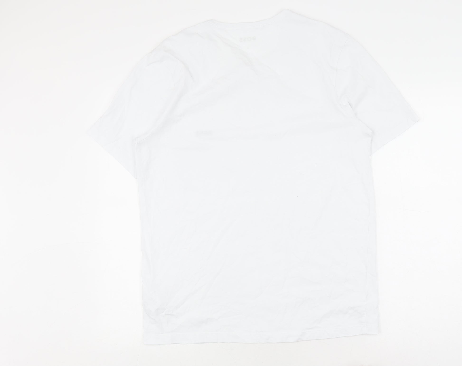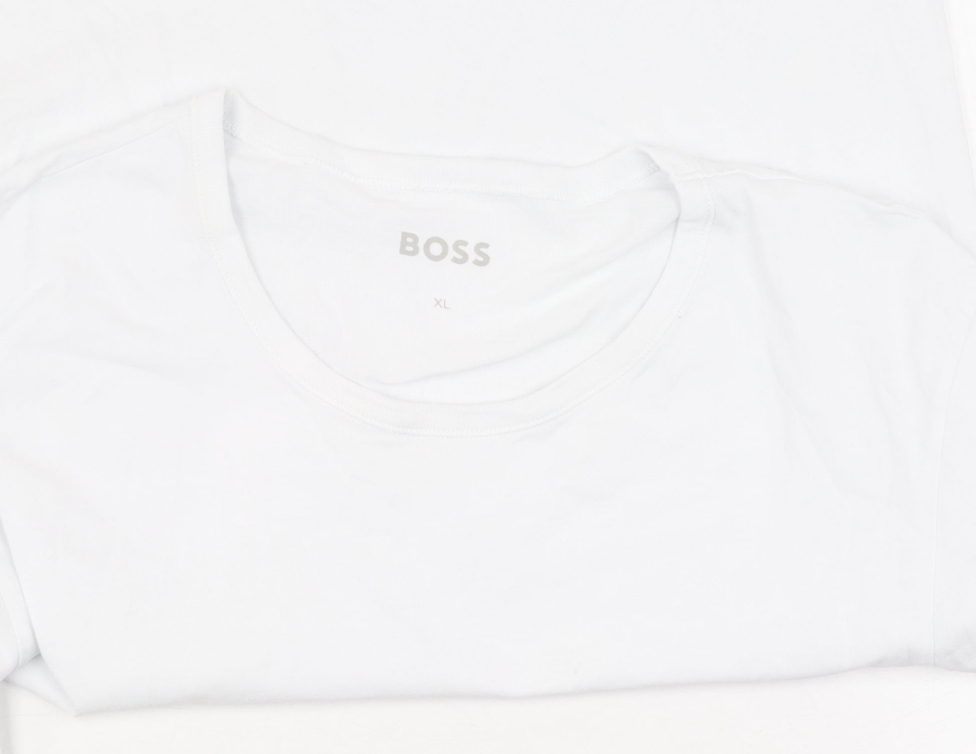 Elevate your casual wardrobe with this pristine HUGO BOSS Men's T-Shirt. Crafted from 100% cotton, this white crew neck tee ensures maximum comfort and breathability, perfect for any season. The short sleeves and regular fit provide a classic silhouette that is both versatile and stylish, making it an essential piece for any fashion-forward gentleman. The iconic BOSS logo accents the design, adding a touch of sophistication and brand prestige. Ideal for everyday wear, this t-shirt can be effortlessly paired with jeans or shorts for a laid-back, polished look. Although in excellent condition with no visible signs of wear, this timeless piece remains in superb shape ready to complement your collection. Don't miss out on owning a staple from the esteemed HUGO BOSS brand at an unbeatable price. Perfectly suited for any occasion, this t-shirt is a must-have addition that promises both quality and style. Grab yours today and enjoy the luxury and comfort HUGO BOSS is renowned for.