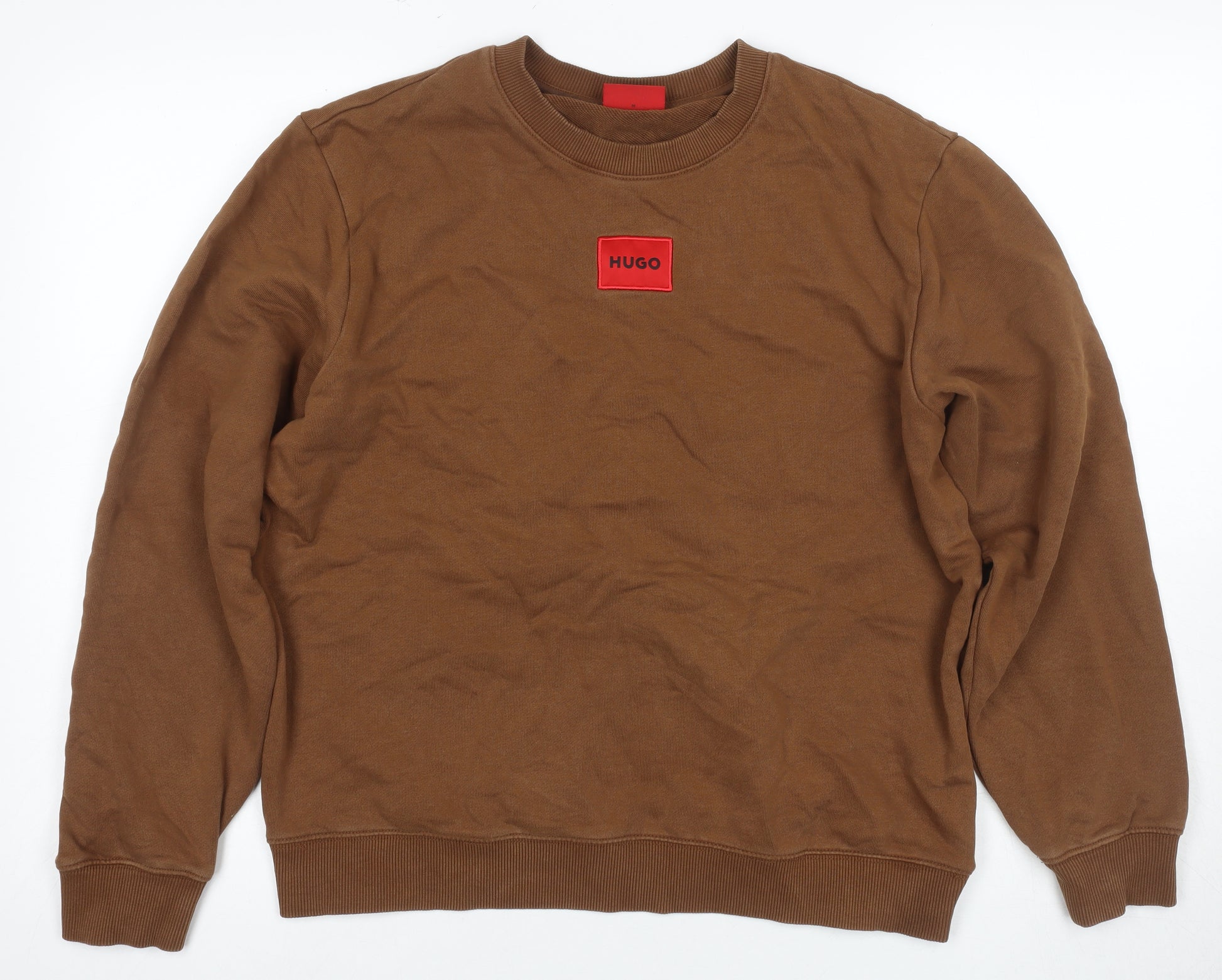 Elevate your casual wardrobe with this stylish Hugo Men's Pullover Sweatshirt. Crafted from a soft jersey fabric, this brown sweatshirt offers a comfortable fit with its long sleeves and crew neckline. Ideal for all seasons, it's perfect for layering or wearing on its own. Featuring a bold logo accent and a relaxed fit, it strikes the right balance between style and comfort. Made predominantly from cotton with a hint of elastane, this sweatshirt is machine washable for easy care. Its timeless design makes it a versatile piece for any casual outing.