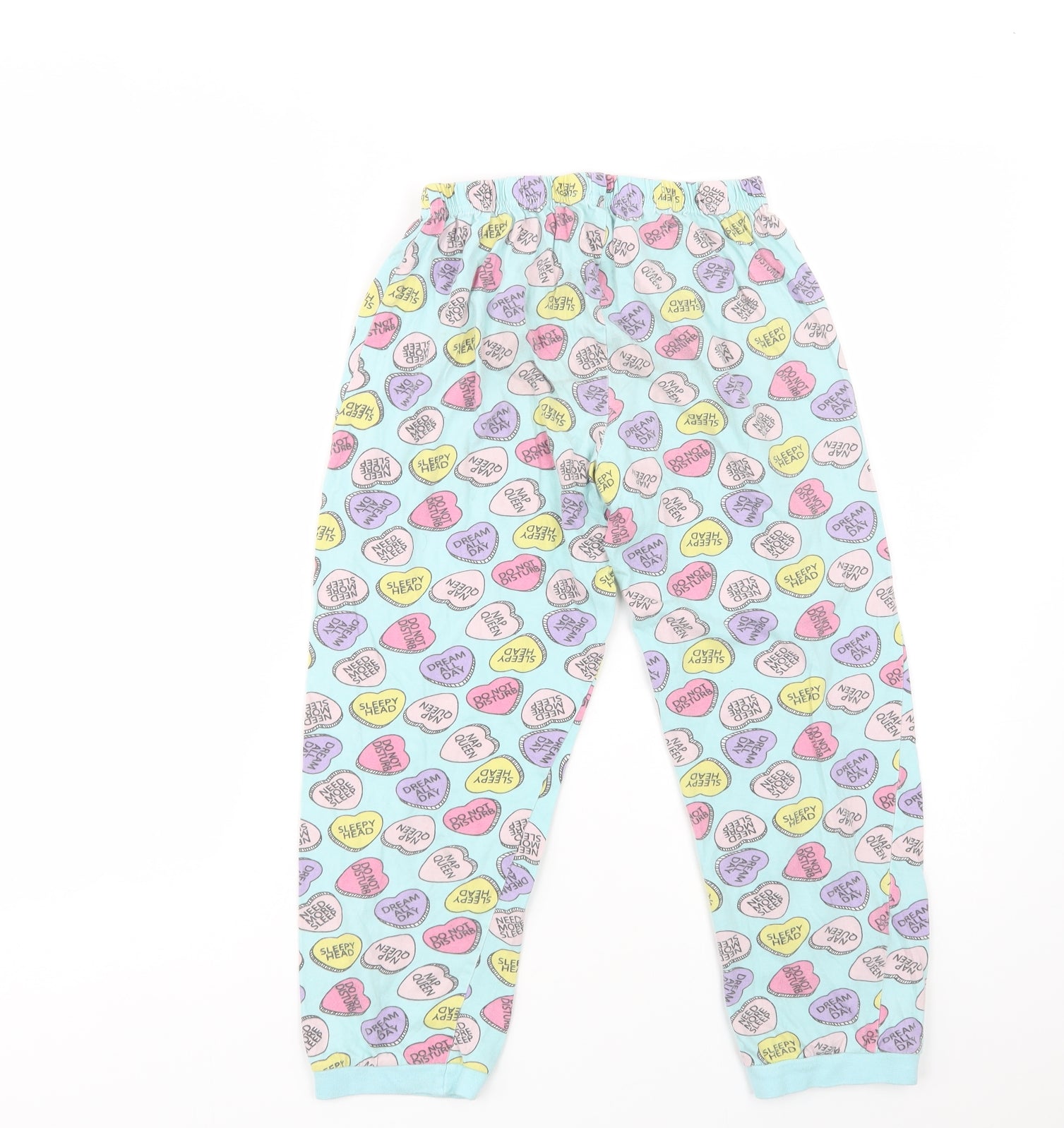 Girls Blue Geometric Cotton Pyjama Pants Size 11-12 Years - Heart Print