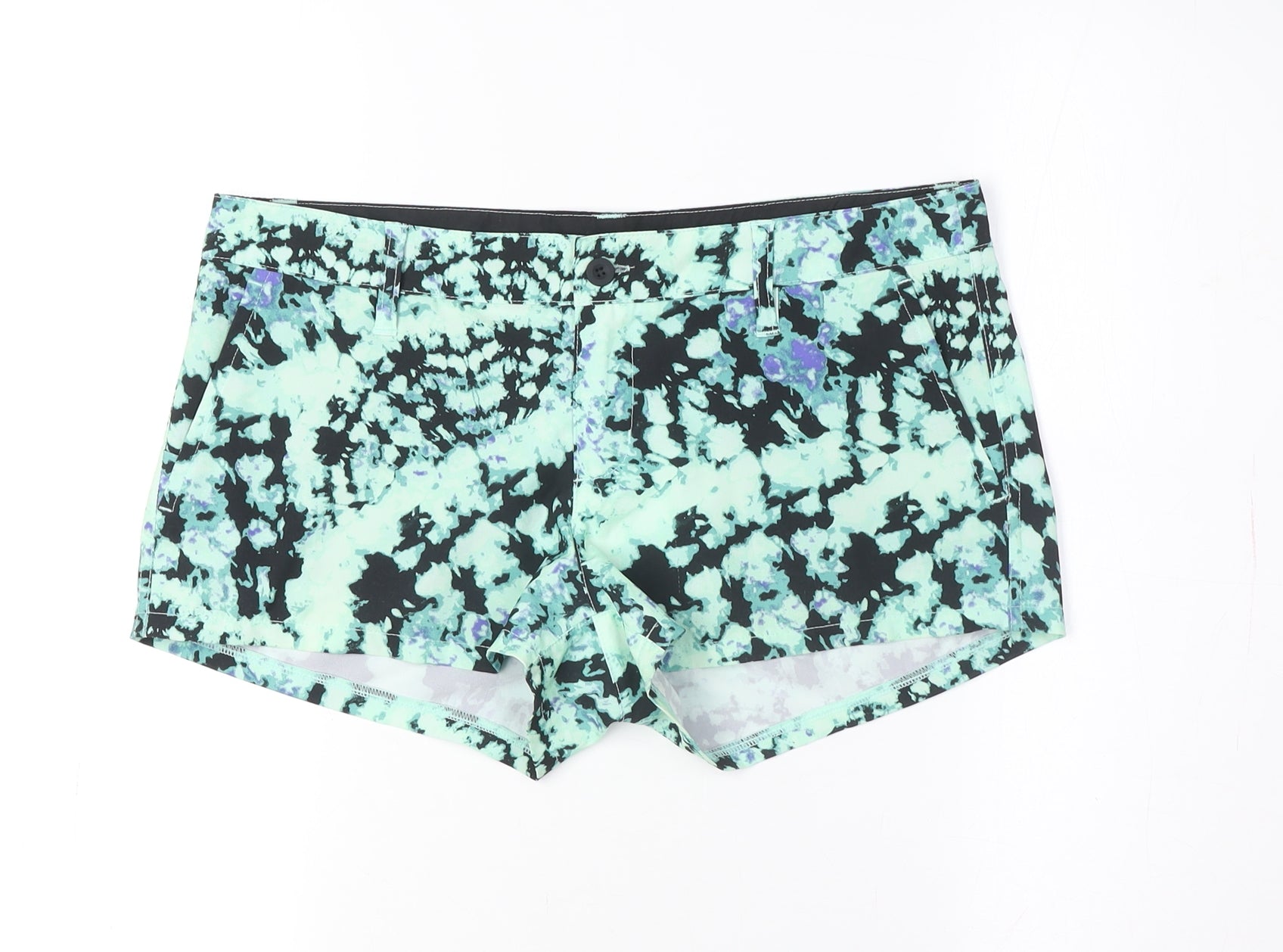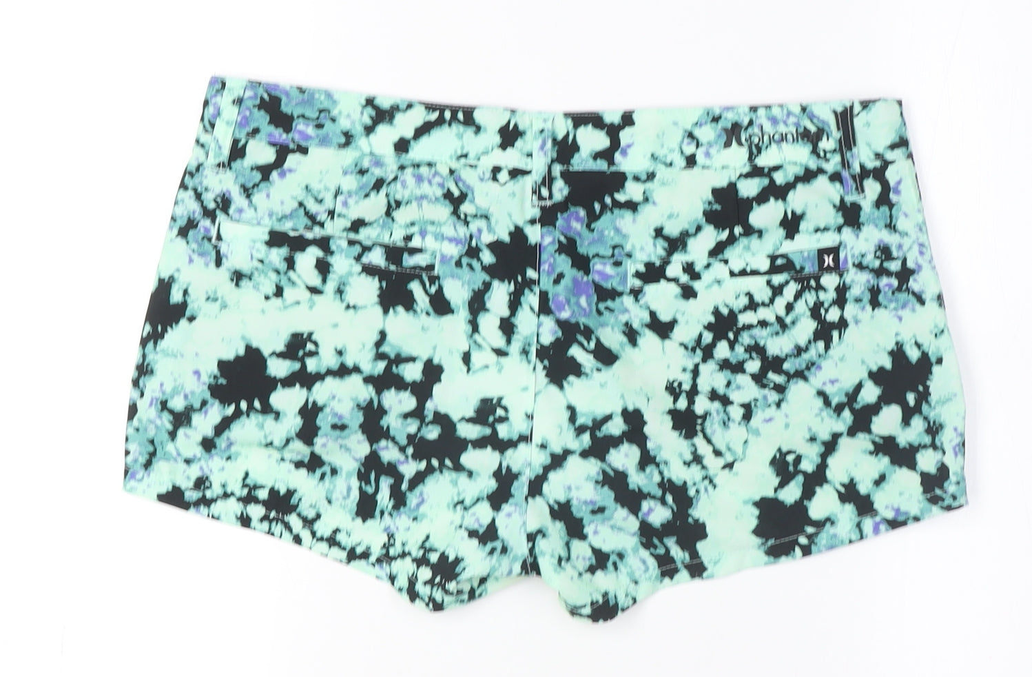 Dive into summer style with these chic Hurley women's Bermuda shorts. Featuring a vibrant green hue and a unique abstract design, these shorts are perfect for both beach wear and casual outings. Crafted from a durable polyester blend and designed with quick-dry and lightweight features, they are ideal for active wear and water sports. The regular fit and flat front provide a comfortable and fashionable look, making them an essential addition to your summer wardrobe. Machine washable for easy care, these shorts will keep you looking and feeling fresh all season long. With a zip closure and 5-pocket design, they blend style with practicality, offering both form and function. Embrace the summer with style and confidence in these dynamic Bermuda shorts.
