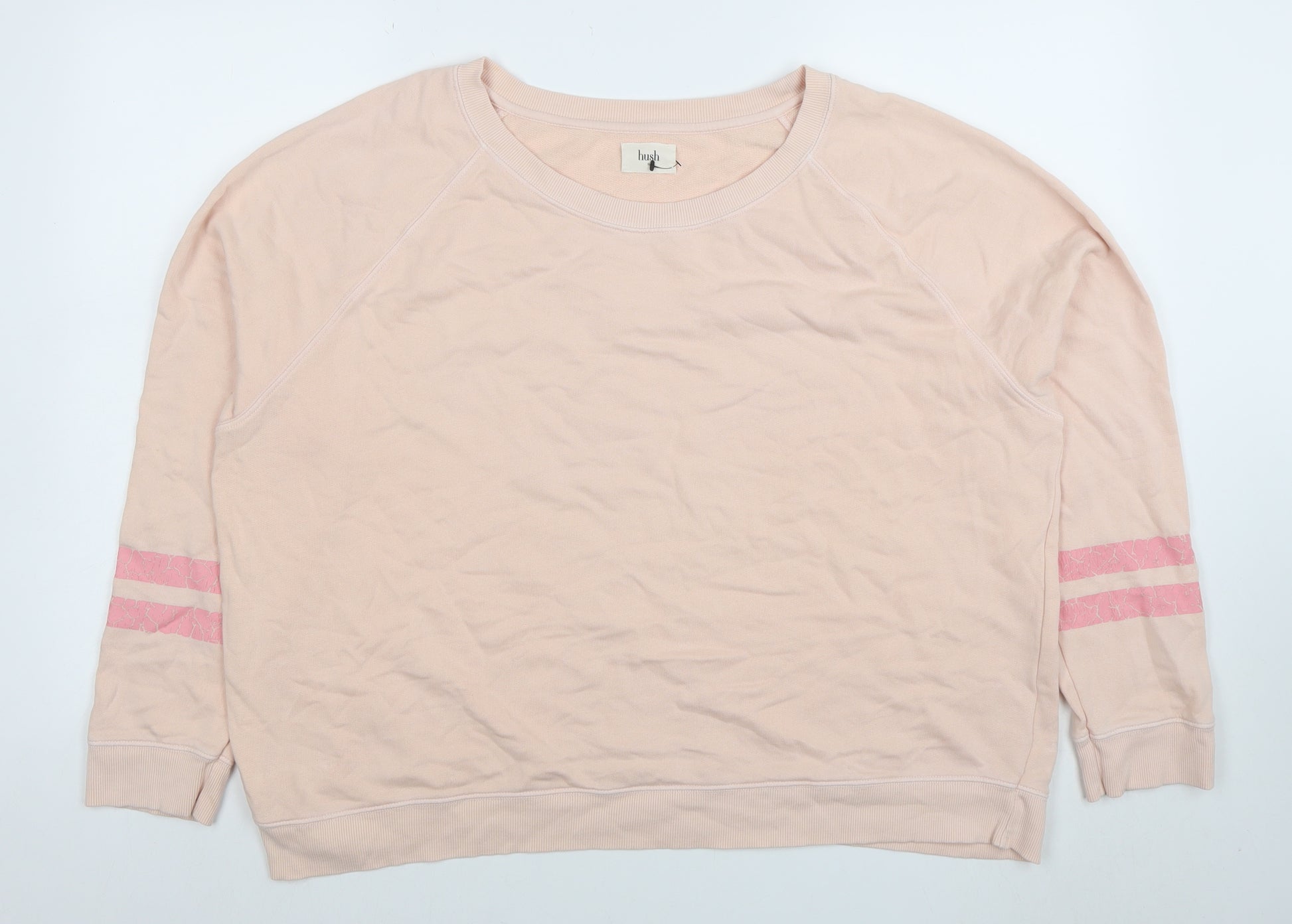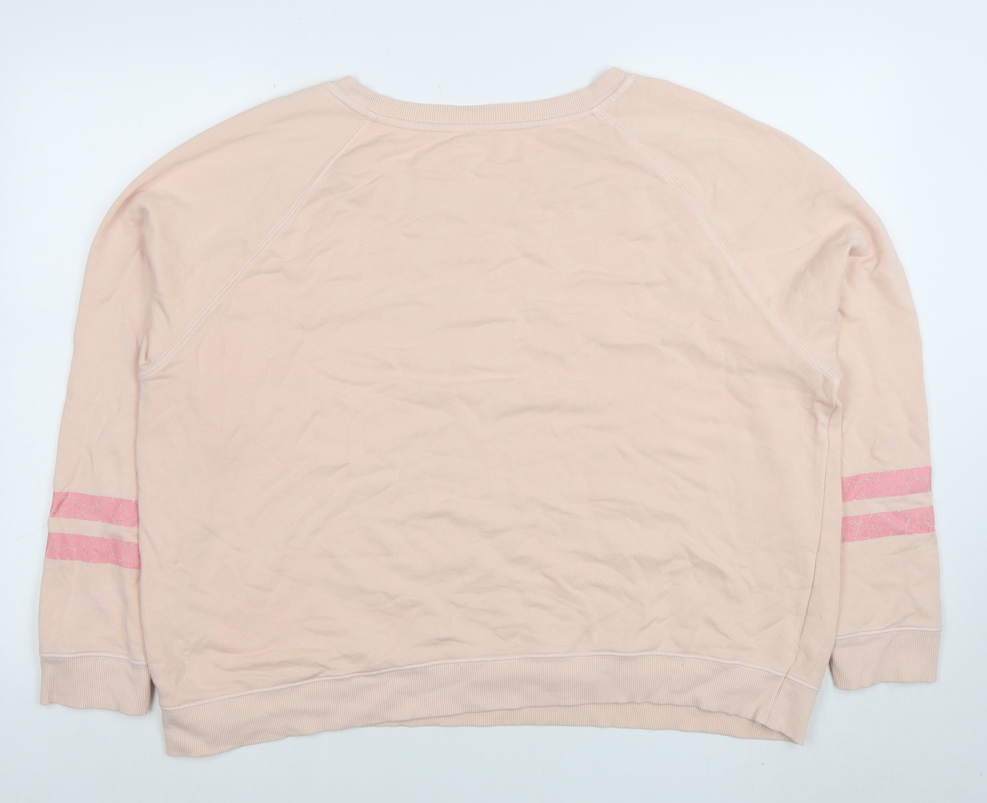 Womens Beige Pink Stripe XL Organic Cotton Pullover Sweatshirt