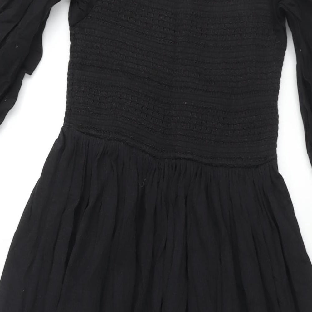 Womens Black Cotton A-Line Size 8 Square Neck Pullover - Rouched Bodice