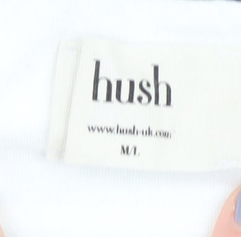Elevate your everyday look with this chic Hush Women's Blue Stripe Pencil Skirt. Designed for a flattering fit, this knee-length skirt is perfect for a variety of casual occasions. The timeless navy and white striped pattern is effortlessly paired with any top, making it a versatile addition to your wardrobe. Crafted from a soft and stretchy blend of 95% cotton and 5% elastane, it offers a comfortable and durable wear. Featuring a mid-rise design, it perfectly contours to your shape, offering a sleek and streamlined silhouette. Ideal for the modern woman, this skirt is machine washable for easy care. The piece shows no signs of wear or damage, ensuring it remains in excellent condition for your enjoyment. Add this stylish and versatile skirt to your collection for a staple that transitions seamlessly from season to season.