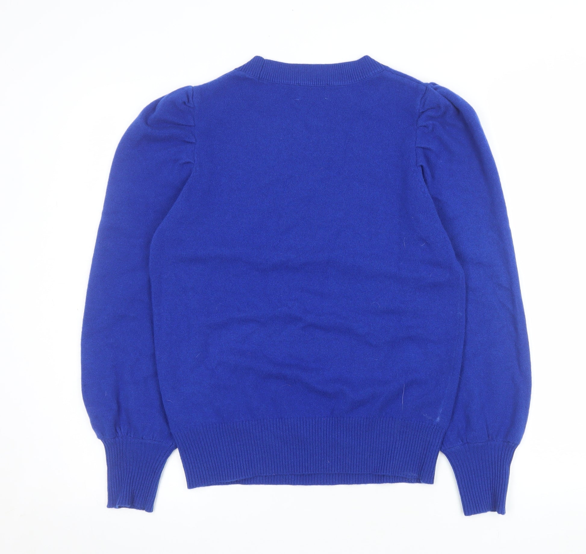 Women's Blue Wool Crew Neck Puff Sleeve Jumper Size S