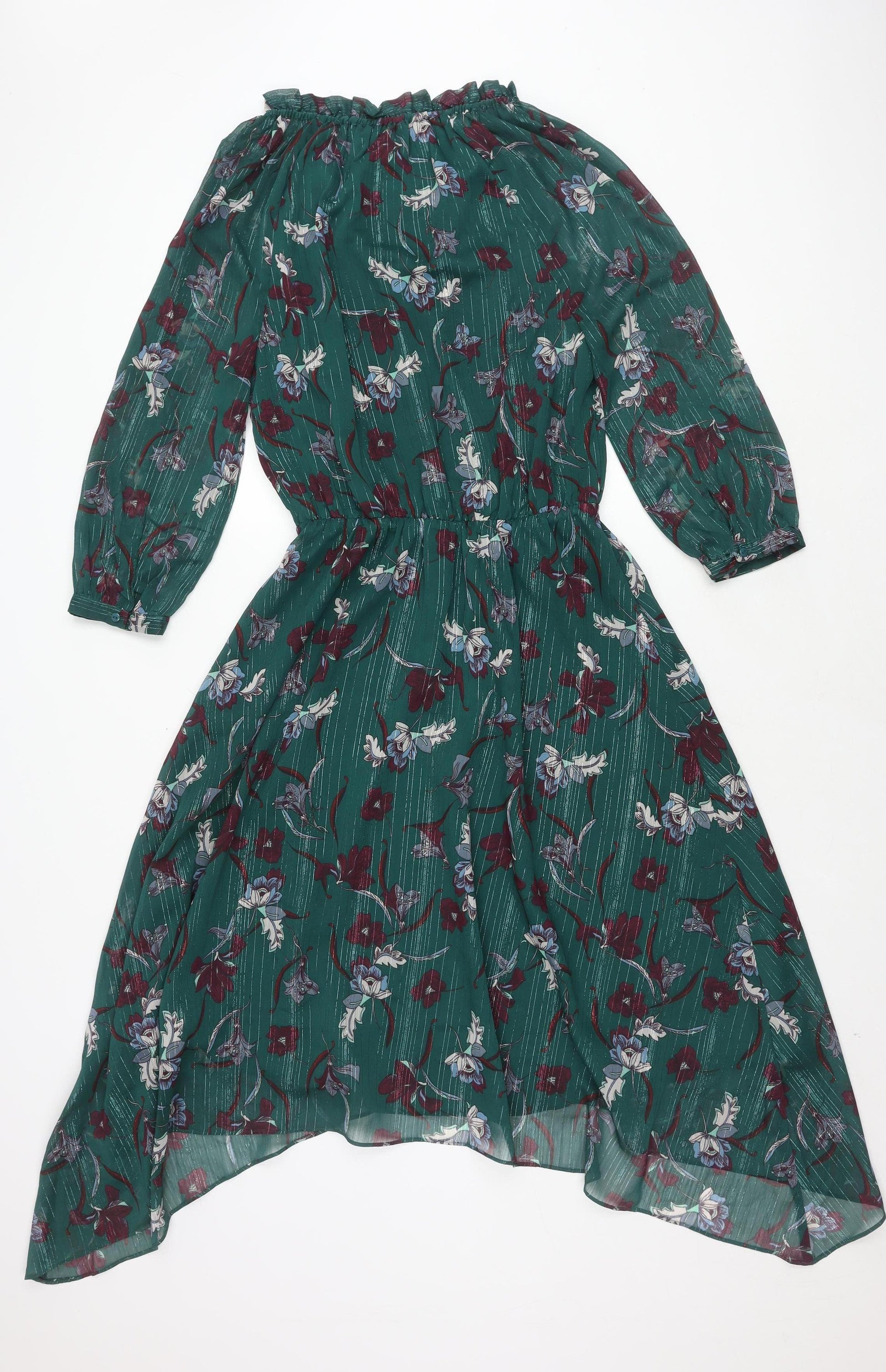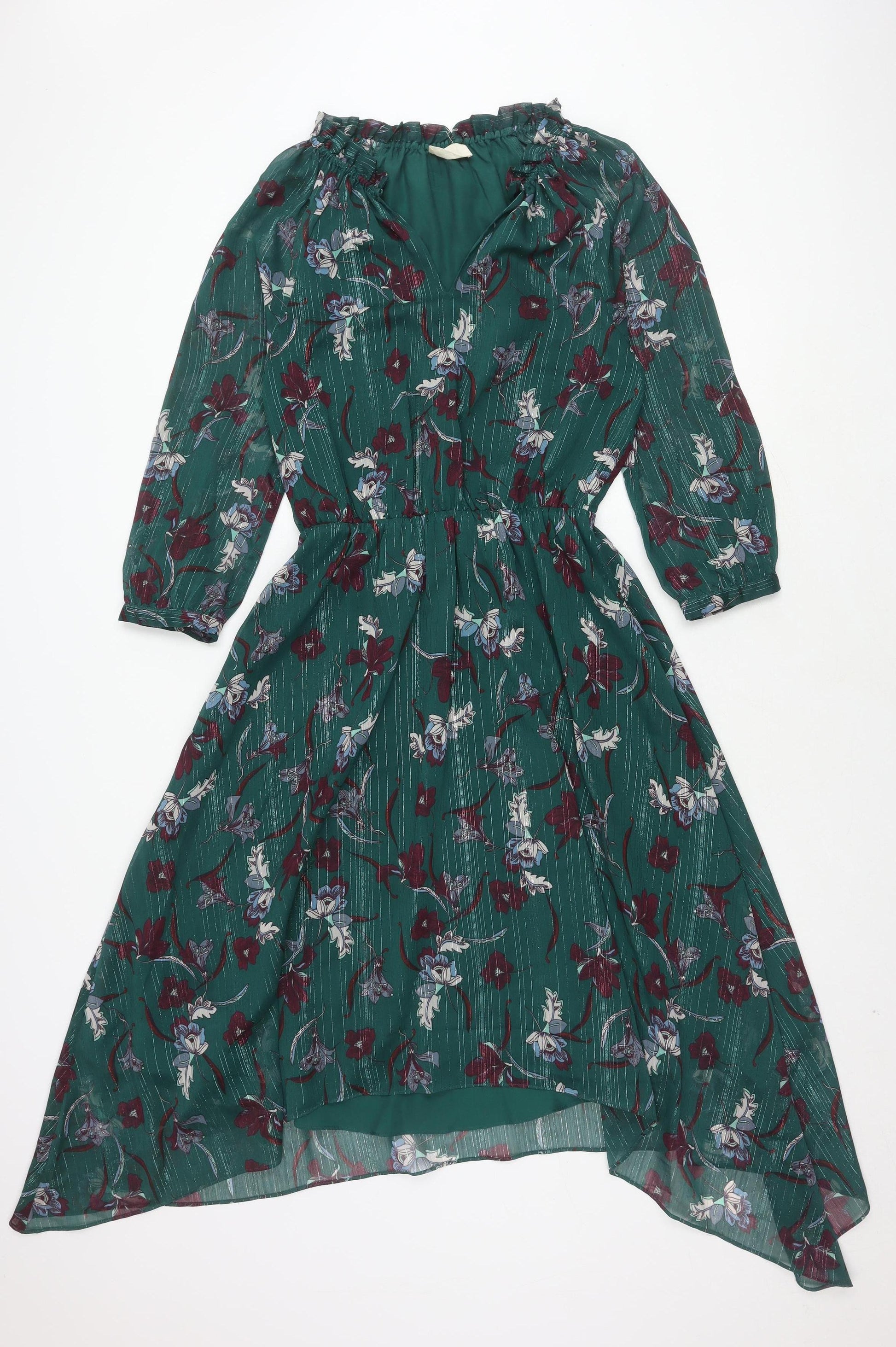Marks and Spencer Womens Green Floral Viscose A-Line Size 8 Round Neck Pullover