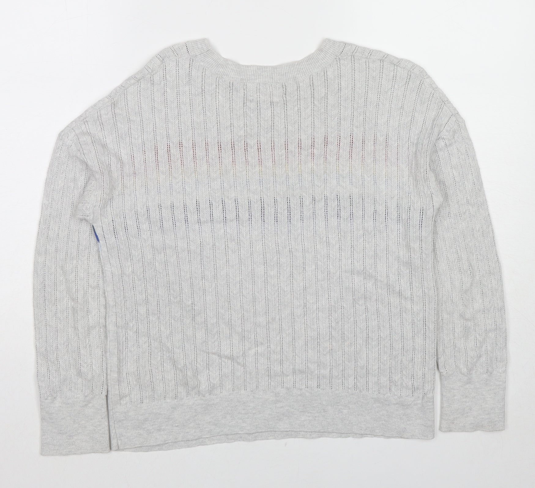 Womens Grey Round Neck Geometric Cotton Pullover Jumper Size XS