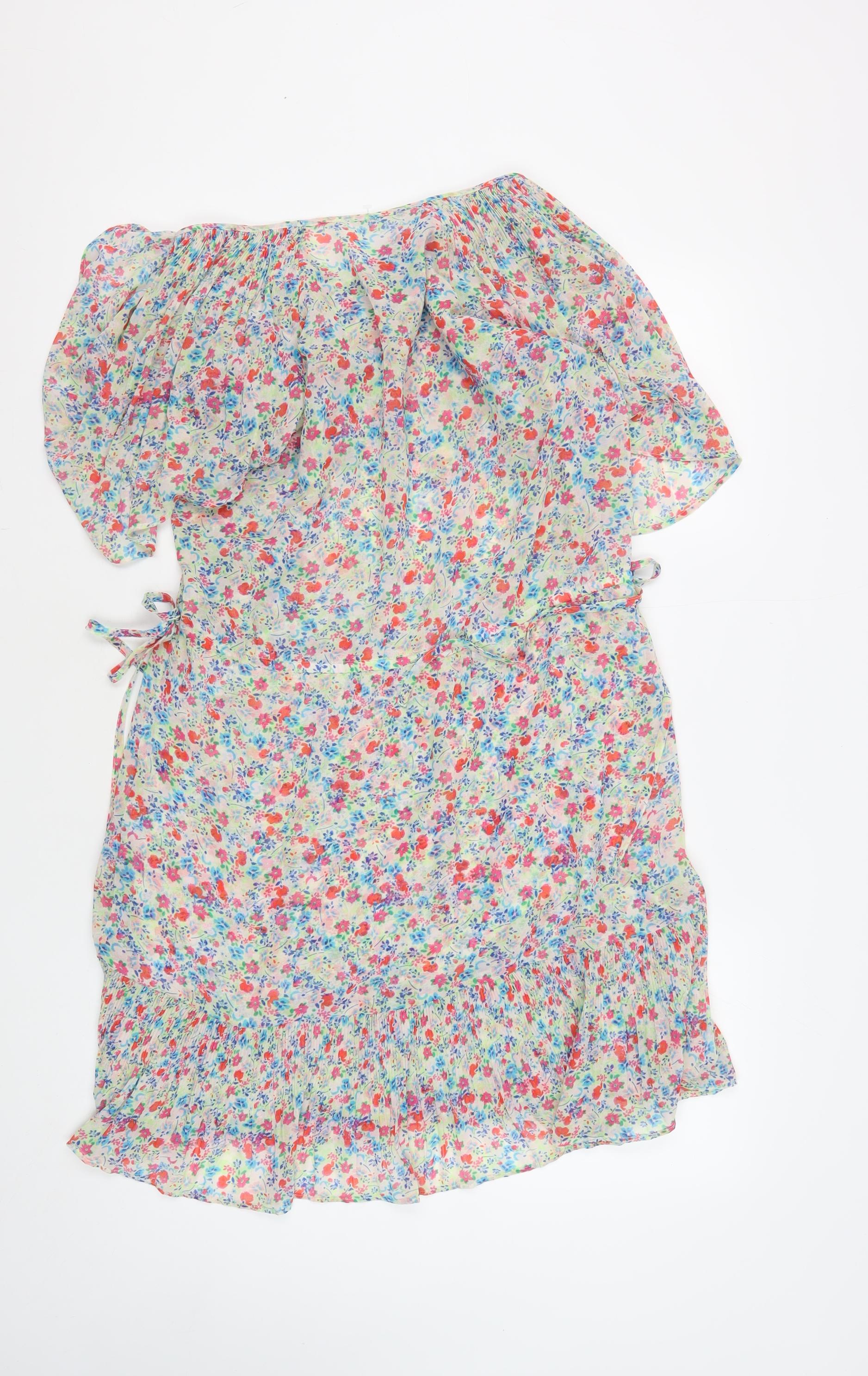 Step into the vibrant spirit of spring with this delightful Hush midi dress, perfect for casual outings. The multicoloured floral pattern breathes fun and personality into your wardrobe, capturing the essence of the season. With its lightweight chiffon fabric, this dress promises comfort and style. The V-neck silhouette elegantly accentuates the neckline, while the flutter sleeves and ruffled accents add a touch of bohemian charm. A versatile piece, it can effortlessly transition from a day in the office to a garden party. The polyester material ensures durability and easy care, making it a pragmatic choice for those busy days. Fitted with a convenient tie closure, the dress allows for adjustable fit, providing both style and comfort. Pair with your favourite sandals or heels for a chic finish, making this dress a must-have addition to your summer collection.
