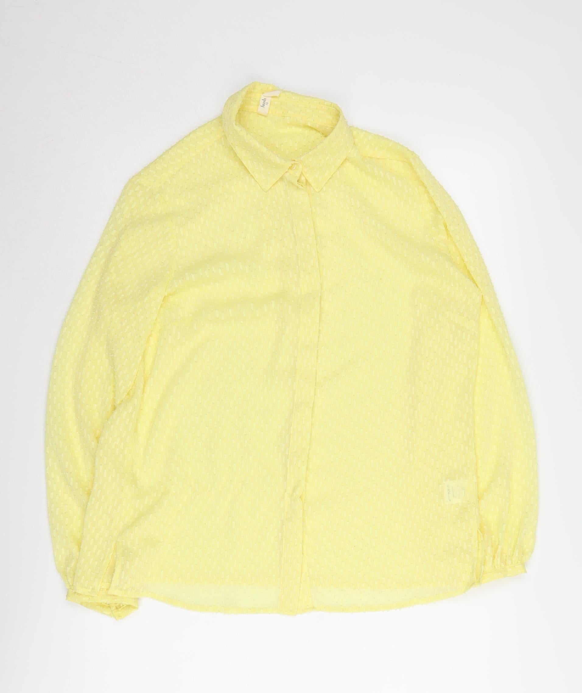 Add a splash of sunshine to your wardrobe with this delightful yellow blouse by hush. Crafted for comfort and style, this lightweight blouse is perfect for spring and summer outings. The bright and cheerful colour is perfectly complemented by its classic collared neckline and long sleeves, making it versatile for both casual weekends and laid-back office wear. With a regular fit and size 10, it’s ideal for those who appreciate an easy style that offers a perfect blend of elegance and simplicity. Made from 100% polyester, this piece is not only stylish but also easy to care for with machine washable convenience. Whether you're dressing it up for a brunch or keeping it simple for a day out, this blouse is sure to be your go-to favourite. The button closure adds to its classic style while ensuring a comfortable fit throughout the day. Ideal for women who love a splash of colour with a touch of elegance, this hush blouse is indeed a wardrobe essential. Its solid pattern makes it easy to pair with a variety of bottoms, from jeans to skirts, offering endless style possibilities. Embrace the sunnier seasons with this vibrant and chic addition to your fashion collection.